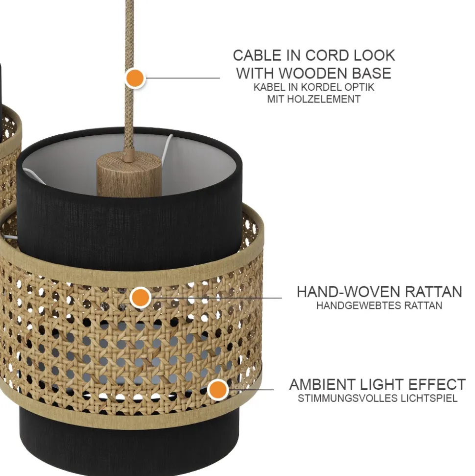 - MATERIAL: Die Hängelampe besteht aus pflegeleichtem Rattan.