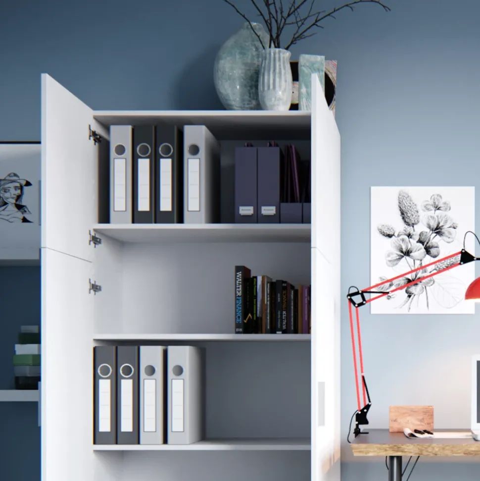 - Der Büroschrank ist ein praktisches Möbelstück mit viel Stauraum, das sowohl im Büro als auch zu Hause verwendet werden kann.