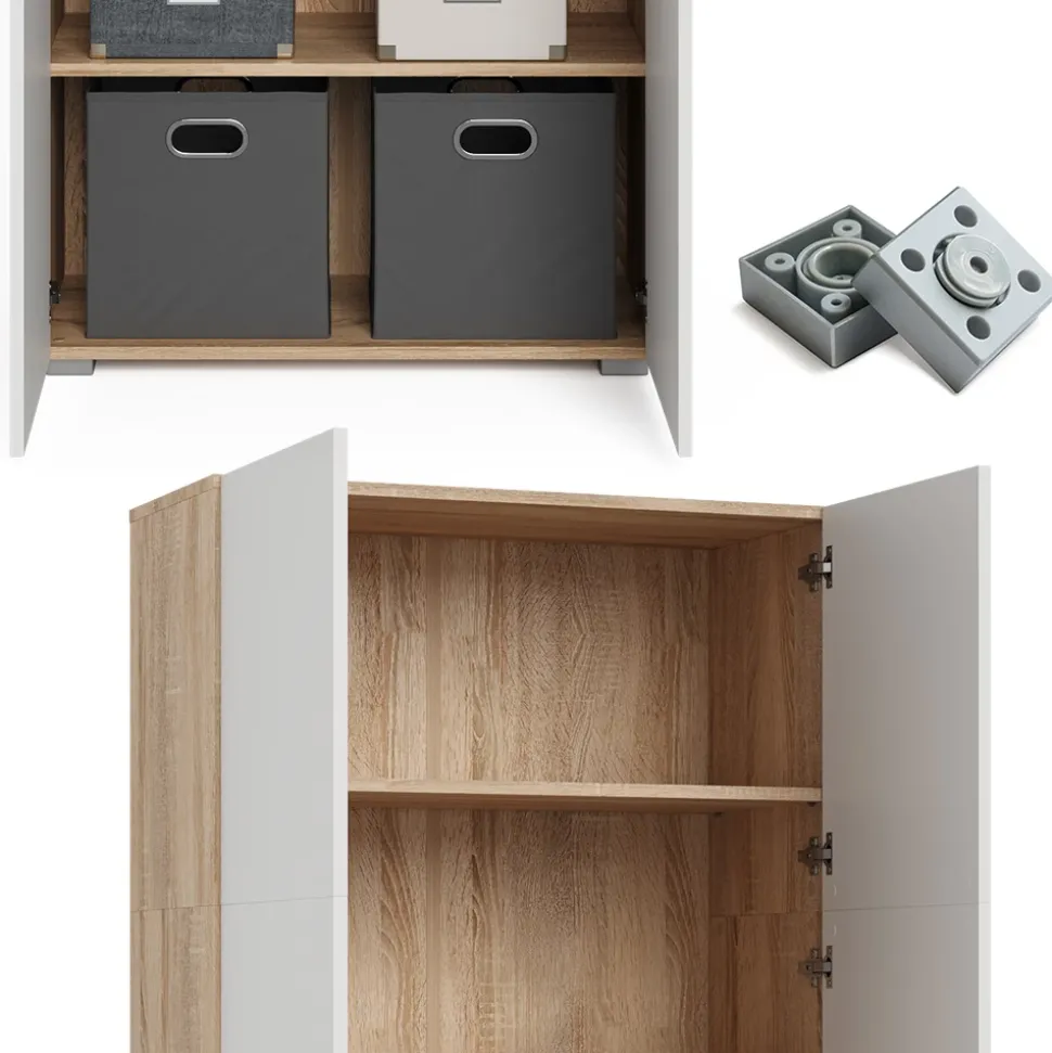 - MATERIAL: Der Mehrzweckschrank besteht aus pflegeleichter Spanplatte 16 mm, mit einer Melaminharzbeschichtung