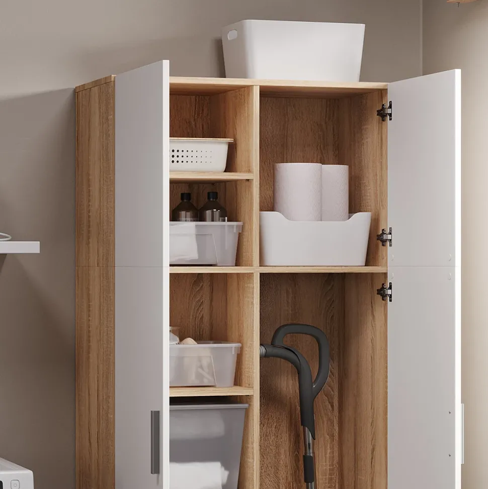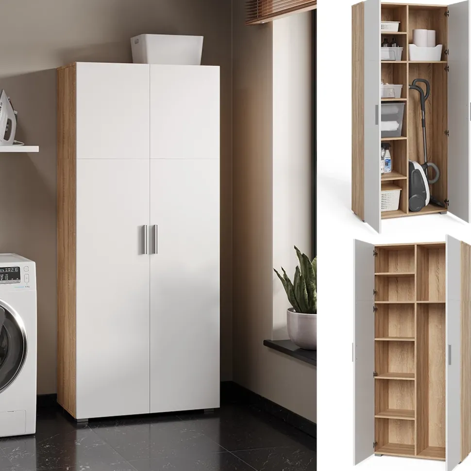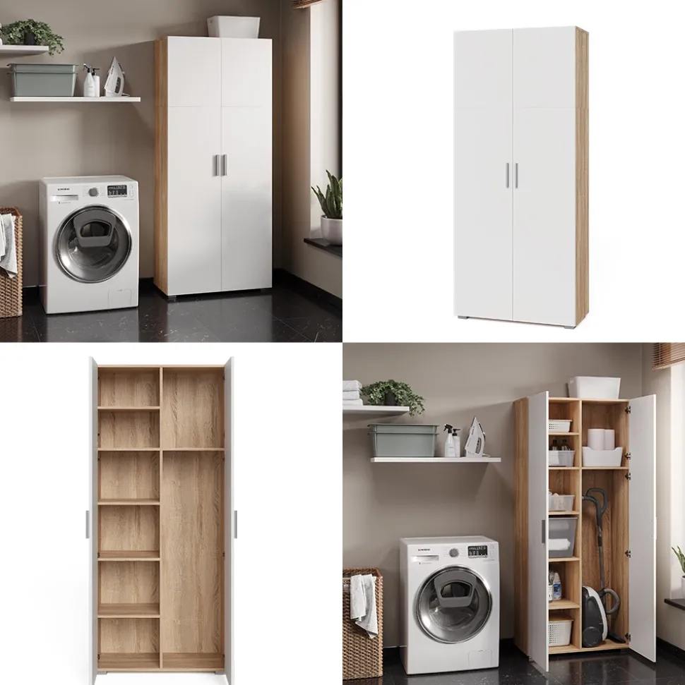 - MATERIAL: Der Mehrzweckschrank besteht aus pflegeleichter Spanplatte 16 mm, mit einer Melaminharzbeschichtung