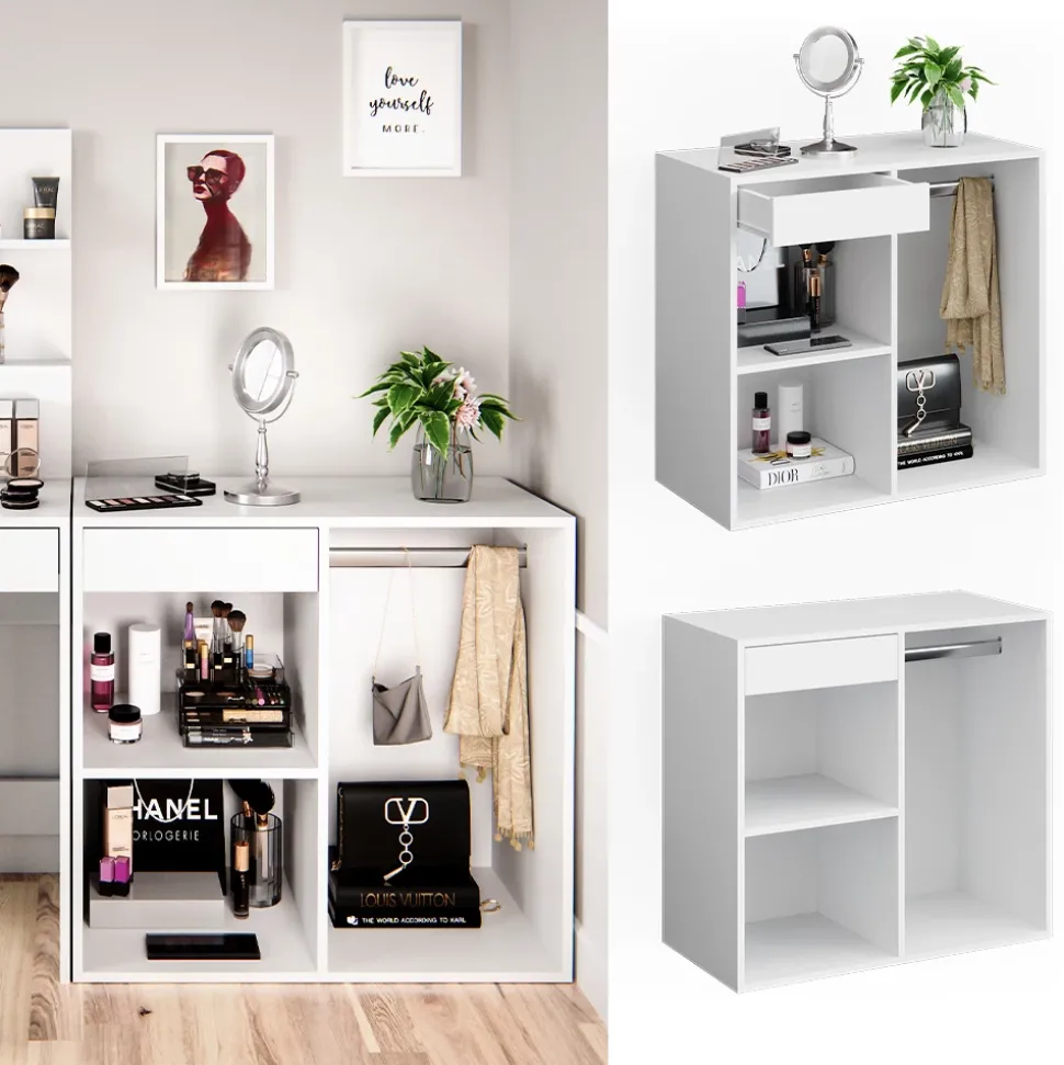 - Unser Beistellschrank für den Kosmetiktisch „Isabelle“ ist eine gute Entscheidung für jeden Schminktisch. Mit seinem optimalen Design bietet er Freude an der Benutzung.