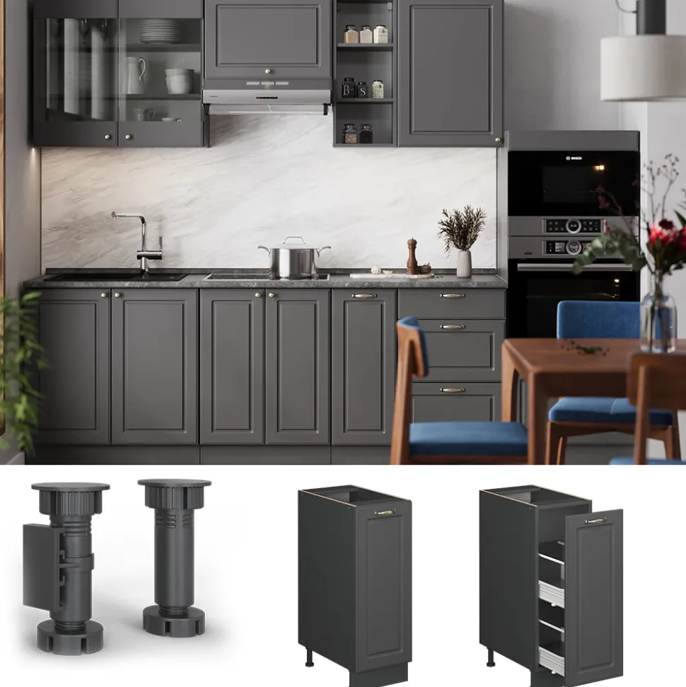 - Fame-Line – Küchenschränke bieten Premium-Qualität mit stabilen Metallgriffen, praktischen Soft-Closing-Scharnieren und Metall-Vollauszügen zu fairen Preisen.