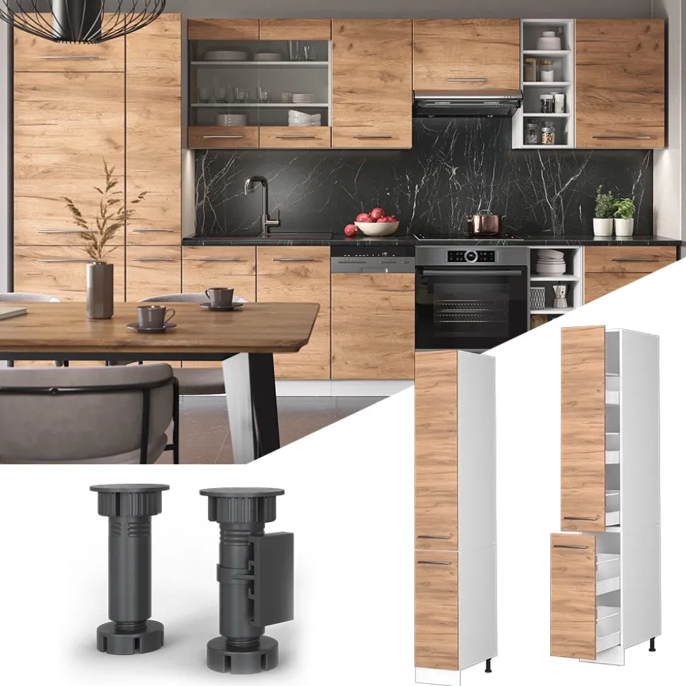 - Fame-Line Küchenschränke bieten Premium-Qualität mit stabilen Metallgriffen, praktischen Soft-Closing-Scharnieren und Metall-Vollauszügen zu fairen Preisen.