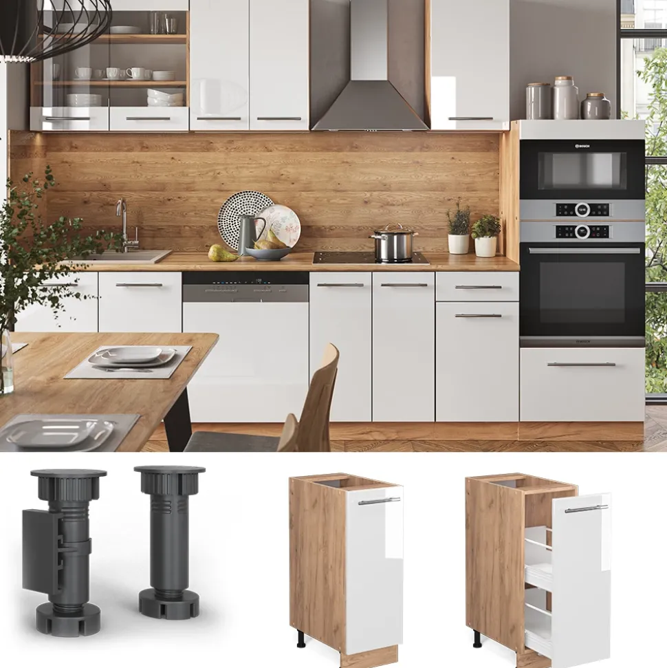 - Fame-Line Küchenschränke bieten Premium-Qualität mit stabilen Metallgriffen, praktischen Soft-Closing-Scharnieren und Metall-Vollauszügen zu fairen Preisen.