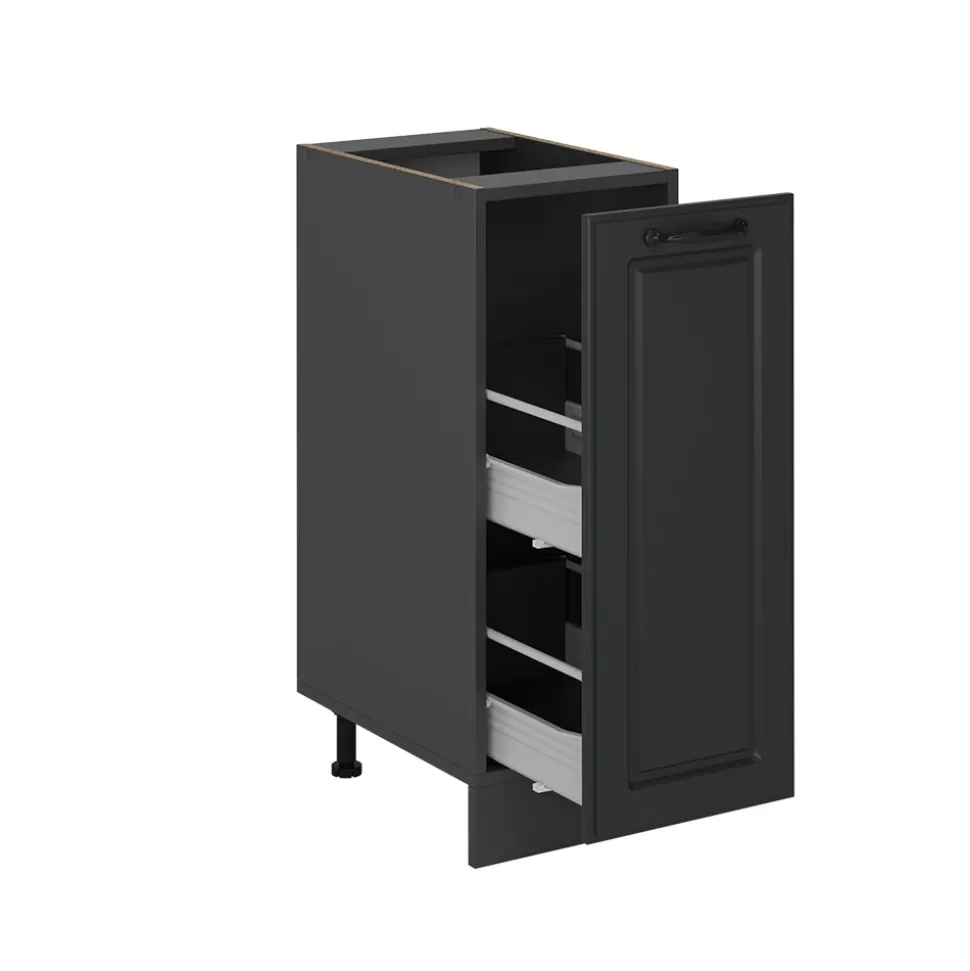 Der Apothekerschrank der R-Line ist der perfekte Unterschrank für Ihre Küche. Dieser Medizinschrank bietet viel Stauraum und kann modular nach Belieben umgestellt werden. Mit zusätzlichen Modulen können Sie Ihren Schrank erweitern und so noch mehr Platz schaffen. Die höhenverstellbaren Füße sorgen dafür, dass dieser Küchenschrank perfekt auf Ihre Bedürfnisse angepasst werden kann. Die R-Line Serie ist in verschiedenen Farben und Konfigurationen erhältlich und bietet somit eine Komplettlösung für Ihre Küche. Mit diesem Unterschrank wird Ihre Küche nicht nur funktionaler, sondern auch stilvoller. Holen Sie sich jetzt den R-Line Apothekerschrank und machen Sie Ihre Küche zu einem echten Hingucker!