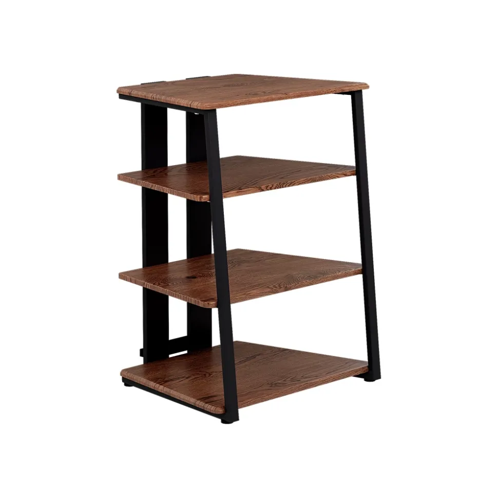 Das HiFi‑Regal „Tonar” kombiniert eine robuste Holz‑Metall‑Konstruktion mit effektiver Vibrationsentkopplung, sodass auch hochwertige Verstärker und Plattenspieler stabil und resonanzarm gelagert werden.
