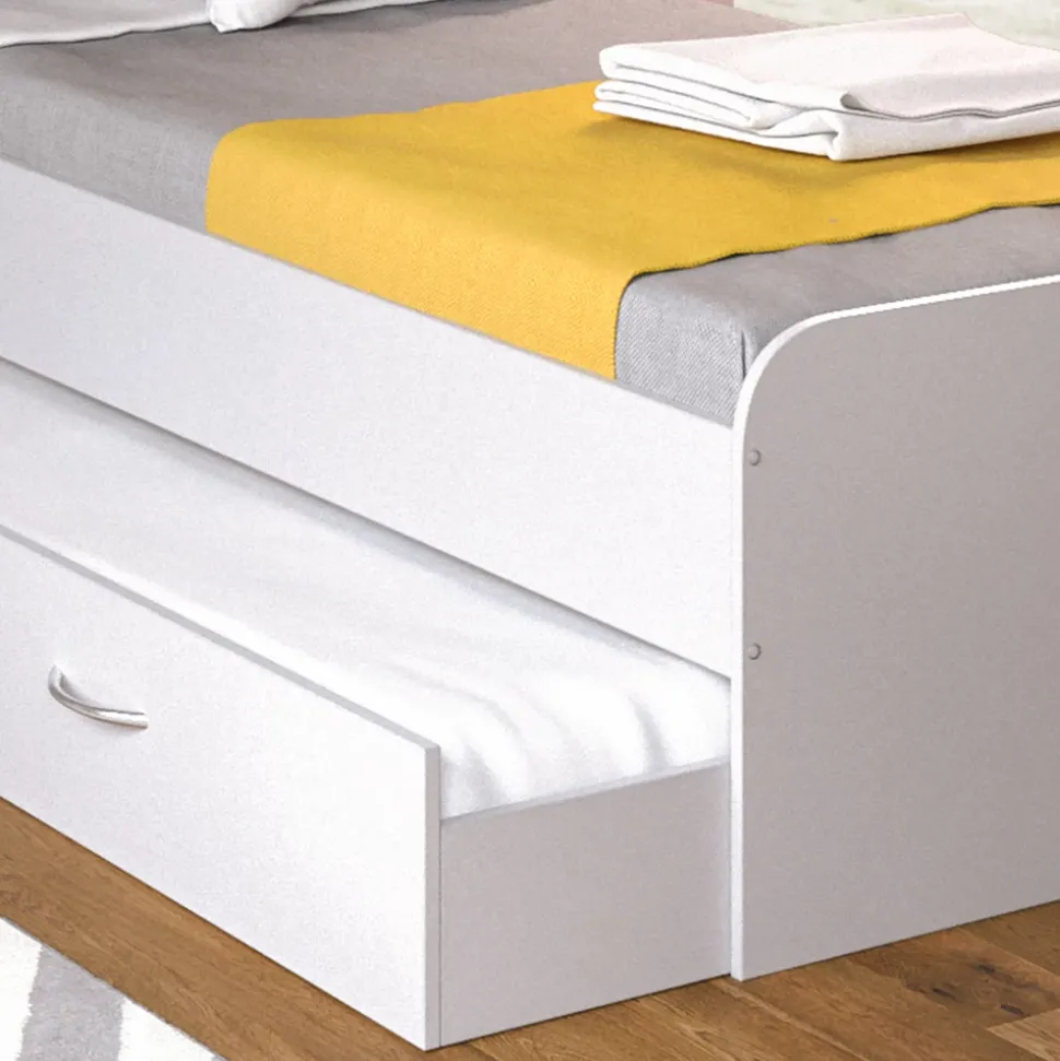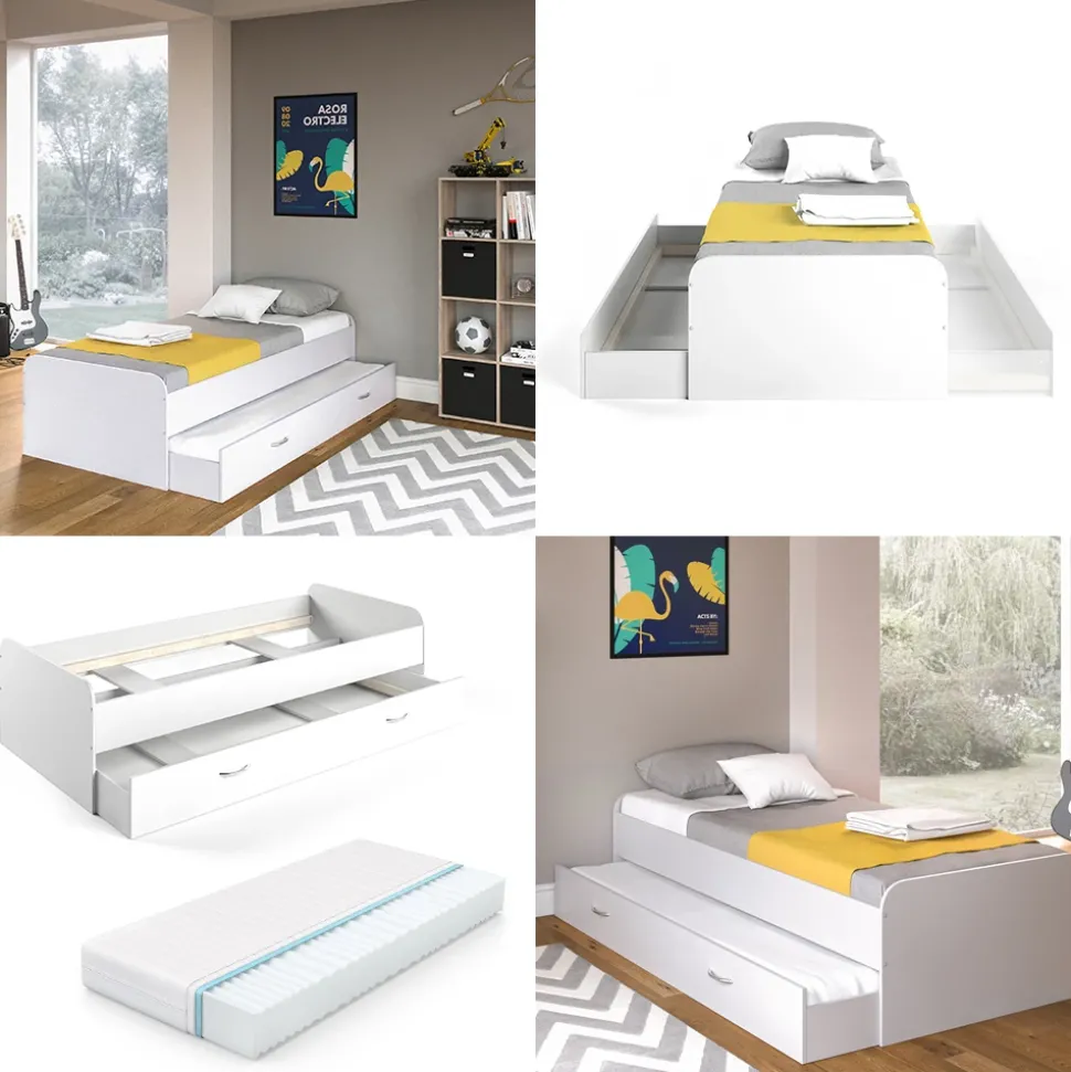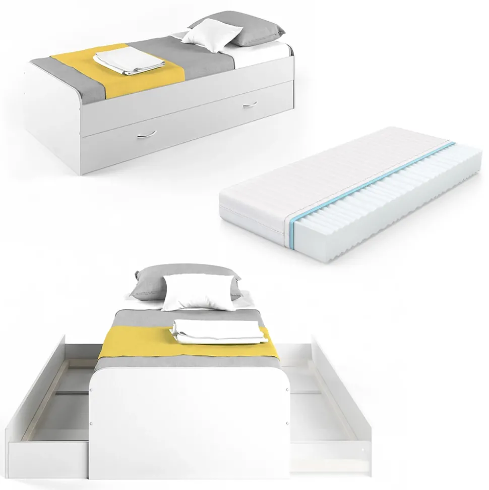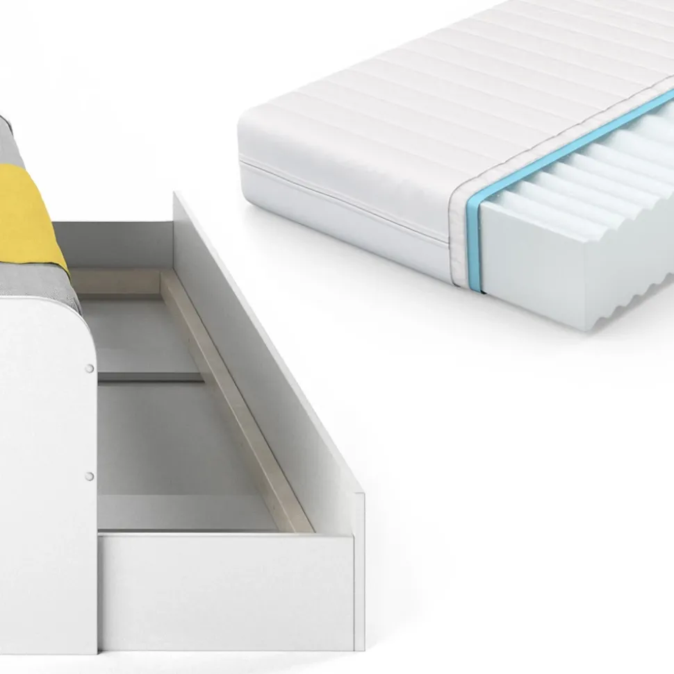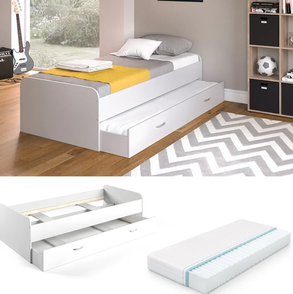 Das Kinderbett Enzo ist ein wahres Multitalent! Es kann als Ausziehbett, Gästebett oder Jugendbett genutzt werden und ist somit für Kinder und Teenager gleichermaßen geeignet. Das funktionelle Design überzeugt ebenso wie die ausziehbare Funktion auf beiden Seiten. Somit kann das Bett im Handumdrehen zum Gästebett umfunktioniert werden, wenn Freunde oder Familie zu Besuch sind. Das Enzo-Modell gehört zur gleichnamigen Serie, die weitere Optionen für die perfekte Einrichtung bietet. Mit der Matratze ist das Bett komplett ausgestattet und steht einem erholsamen Schlaf nichts im Wege. Das Kinderbett Enzo ist ein Muss für Eltern, die flexibles Design und Komfort im Kinderzimmer suchen.