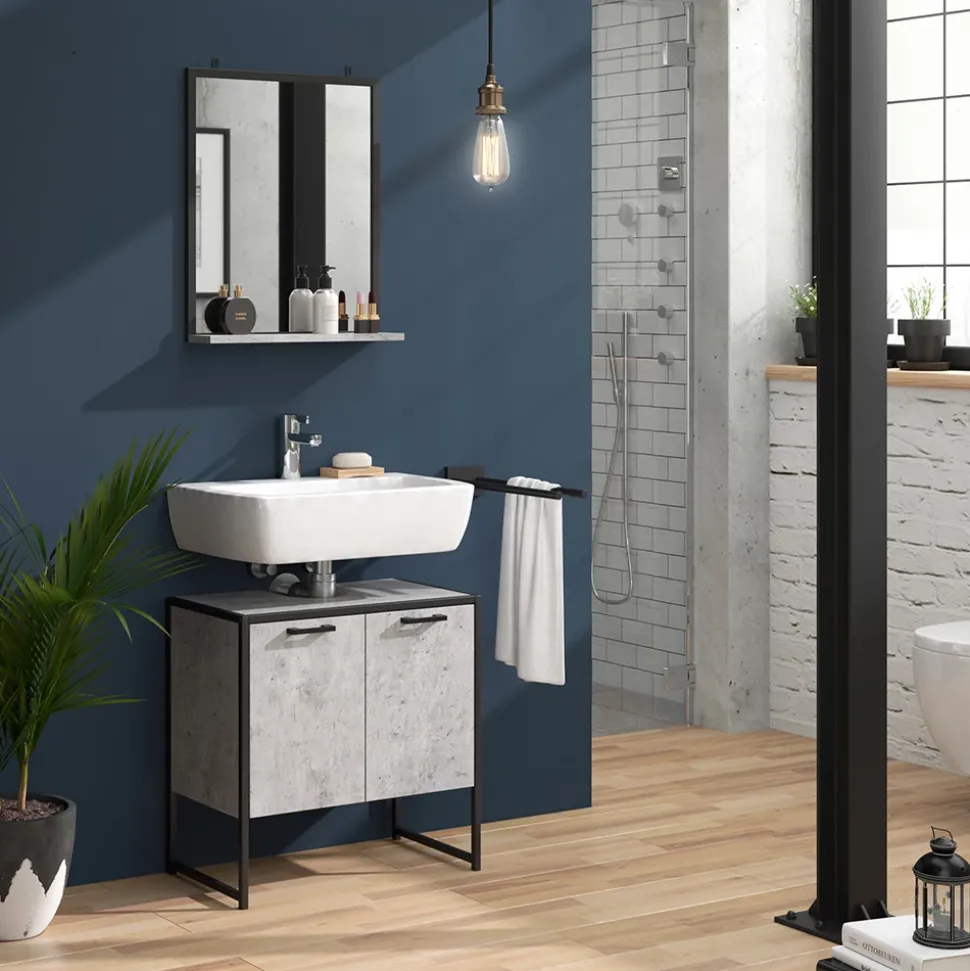 Der Badezimmerspiegel Fyrk ist nicht nur ein einfacher Spiegel, sondern ein Möbelstück, das Ihr Badezimmer aufwertet und Ihrem Raum eine moderne Note verleiht. Mit seinem Loft-Stil und einer praktischen Ablagefläche, ist dieser Hängespiegel platzsparend und sorgt für eine perfekte Ordnung. Der Fyrk Badezimmerspiegel ist ein komplementäres Element, das perfekt zu anderen Artikeln passt und sich leicht mit anderen Produkten der Fyrk-Kollektion kombinieren lässt. Sie werden sich in diesen Spiegel verlieben, der den Charme Ihres Badezimmers auf unbeschreibliche Weise erhöht. Probieren Sie es aus und lassen Sie sich von der modernen Schönheit des Fyrk Badezimmerspiegels verzaubern.