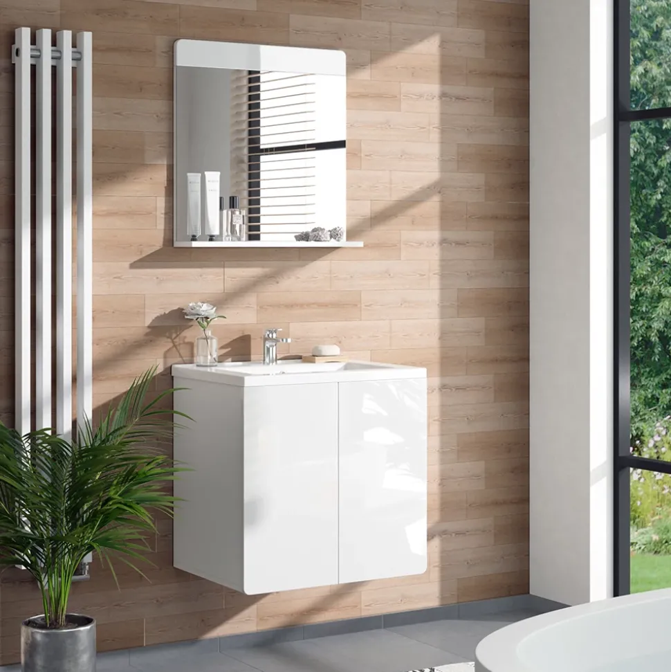 - Der Badspiegel ist platzsparend und komplementär zu anderen Artikeln. Er hat eine Ablagefläche, auf dem Sie Ihre Utensilien abstellen können.