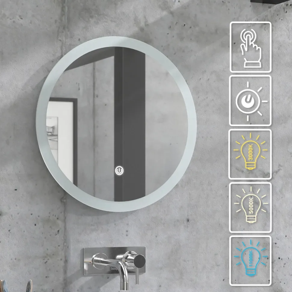 Dieser runde Badezimmerspiegel ist nicht nur ein Hingucker, sondern auch ein funktionaler und moderner Begleiter für Ihr Bad. Der LED-beleuchtete Rahmen sorgt für die richtige Beleuchtung beim Schminken oder Rasieren und durch den berührungsempfindlichen Schalter lässt sich die Helligkeit ganz einfach anpassen. Der Spiegel lässt sich schnell und einfach an der Wand anbringen und bereichert jedes Badezimmer mit seinem stylischen Design. Nutzen Sie diesen Spiegel, um sich jeden Tag selbstbewusst und von Ihrer besten Seite zu zeigen. Ein Badezimmerspiegel, der sowohl das Aussehen als auch die Funktionalität Ihres Bades verbessert.