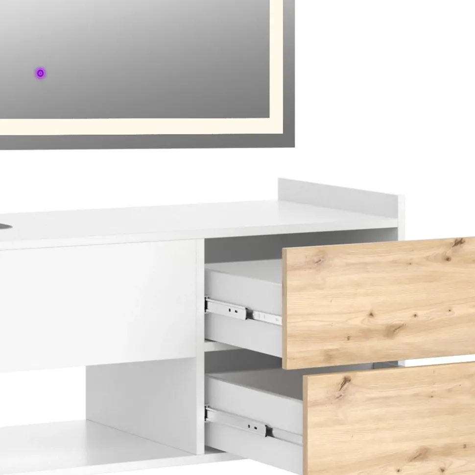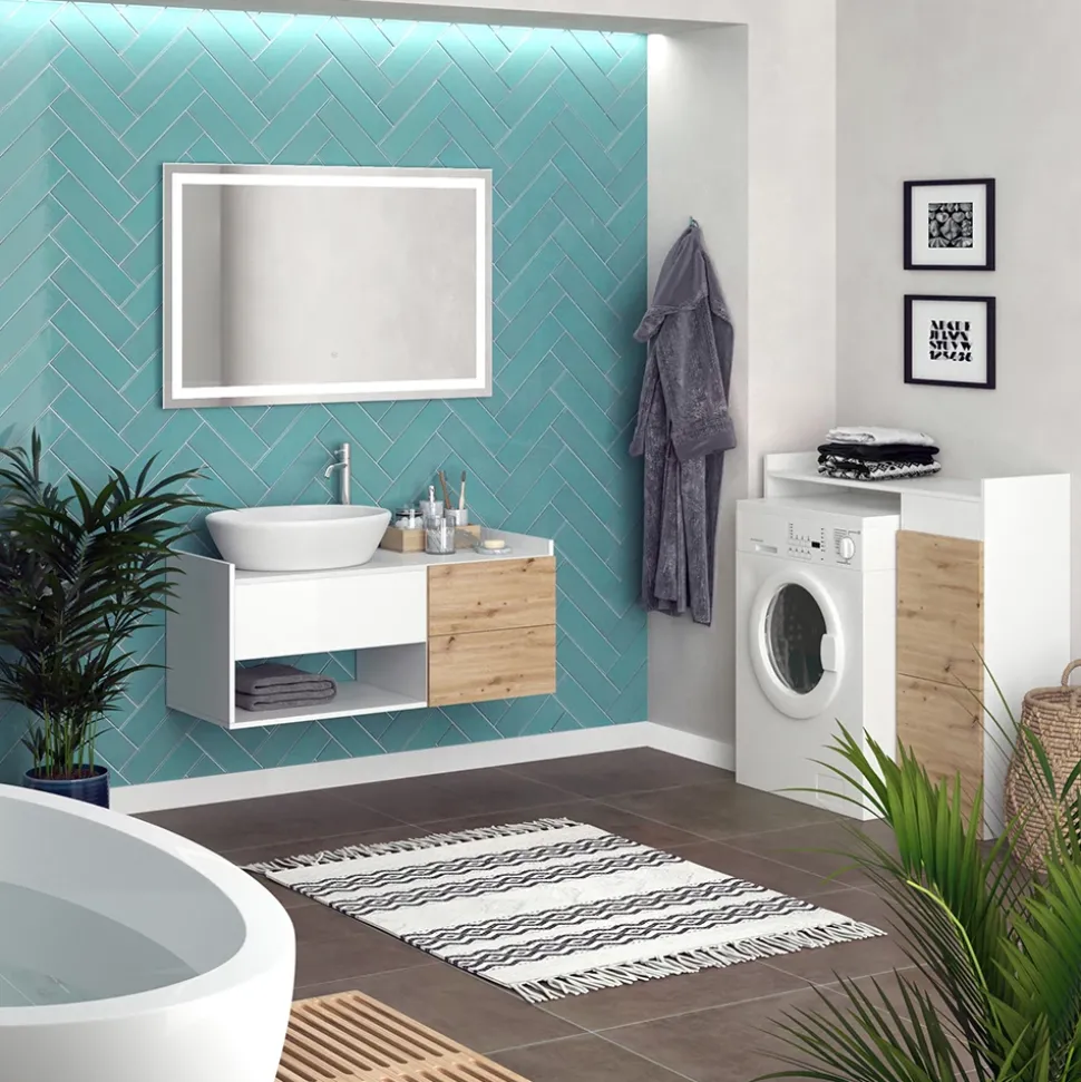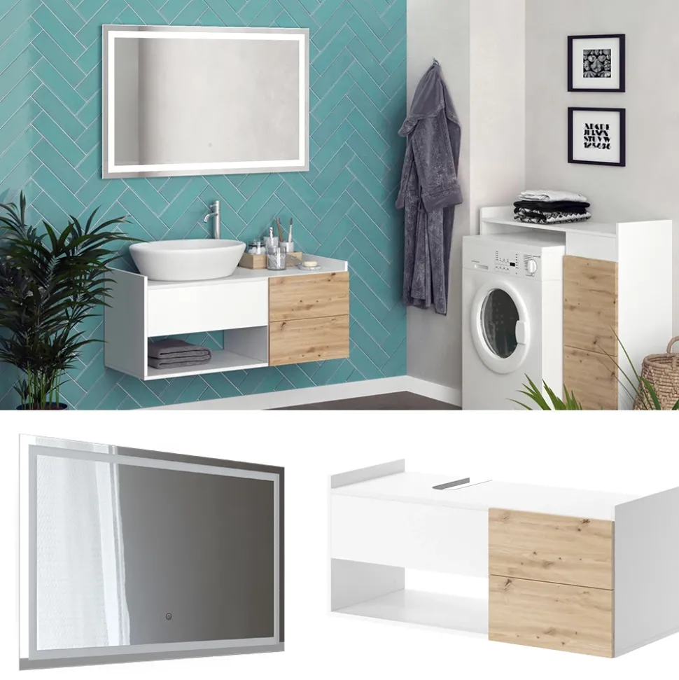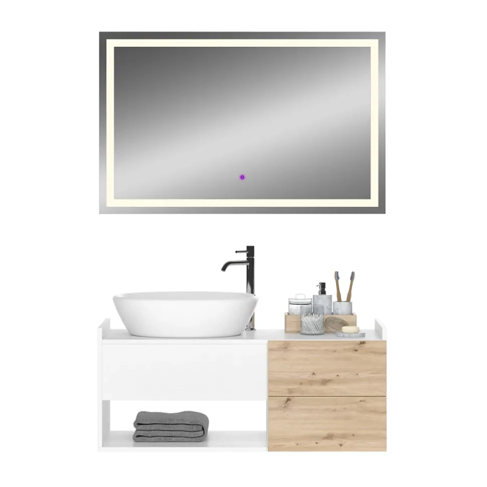- MATERIAL: Der Waschtischunterschrank besteht aus hochwertiger Spanplatte. Der LED-Spiegel beeindruckt mit einer Glasdicke von 4 mm. Leicht zu pflegen für langanhaltende Eleganz in Ihrem Badezimmer