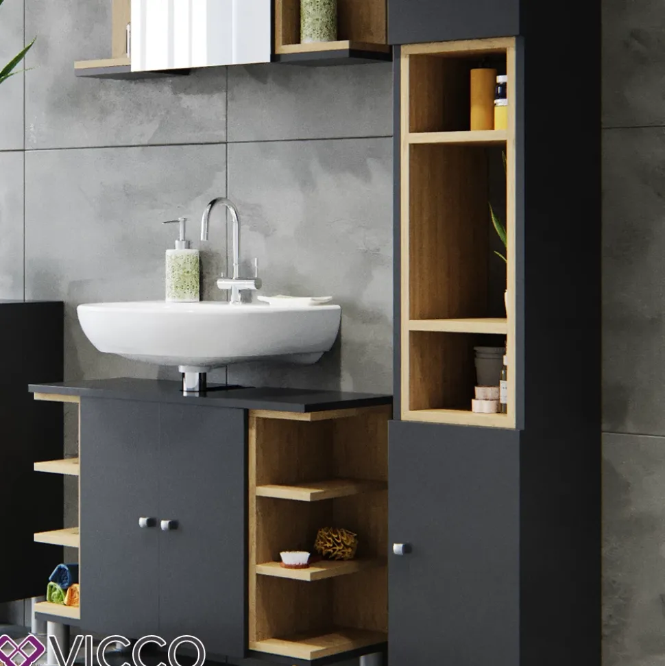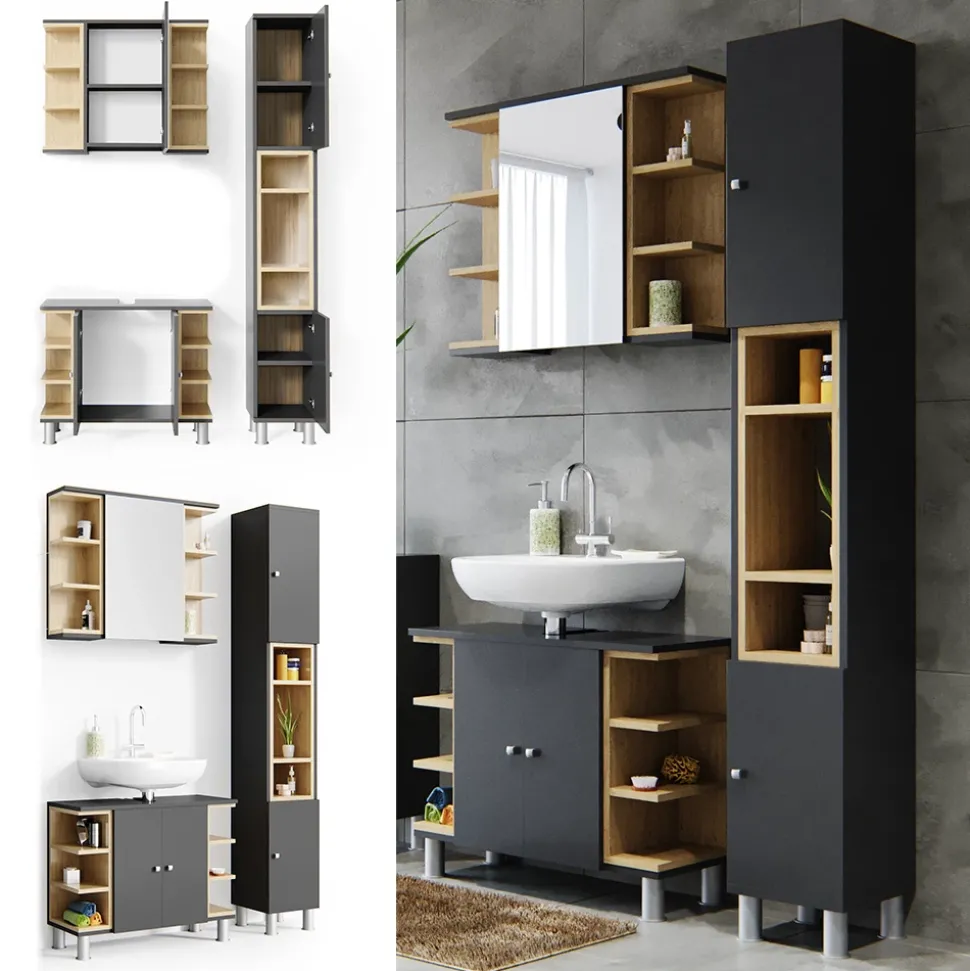 - LIEFERUMFANG: Waschbeckenunterschrank, Bad Spiegelschrank, Hochschrank, Montageanleitung, Montagematerial.