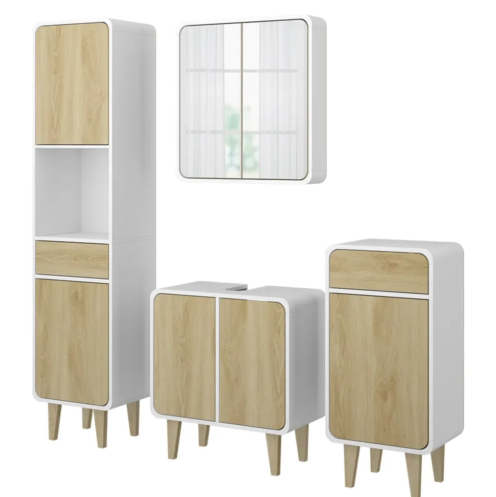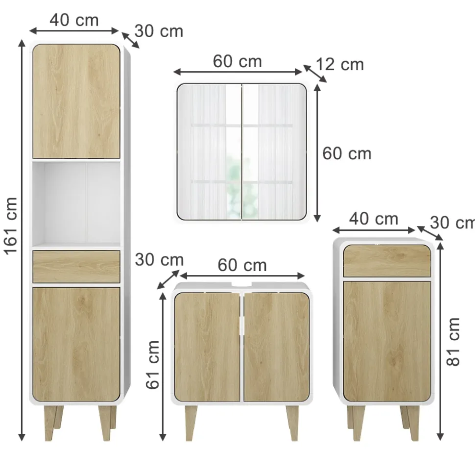 - LIEFERUMFANG: Badspiegelschrank, Waschbeckenunterschrank, Midischrank, Hochschrank, Montageanleitung, Montagematerial (Dekoration nicht enthalten)