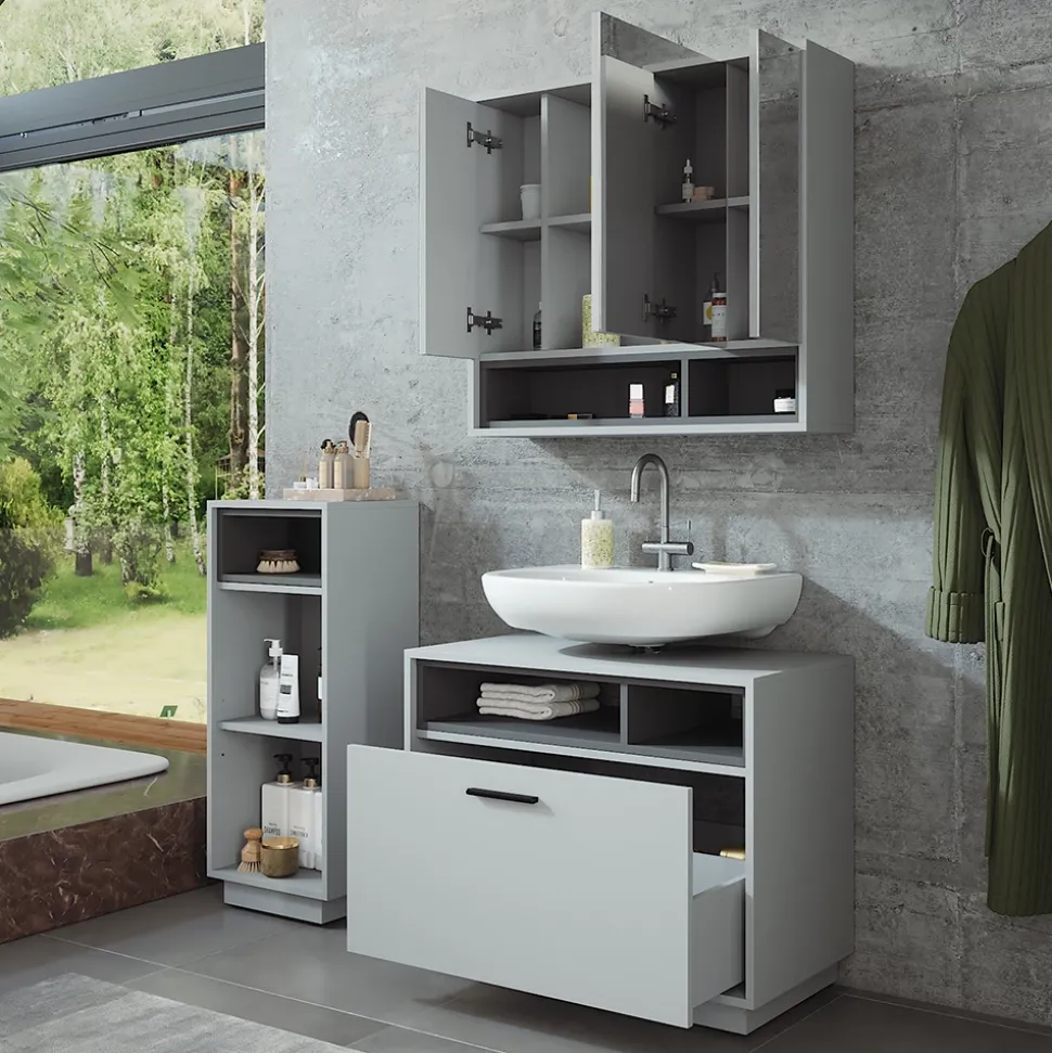 - LIEFERUMFANG: Waschbeckenunterschrank, Spiegelschrank, Midischrank, Montageanleitung, Montagematerial (Dekoration nicht enthalten)