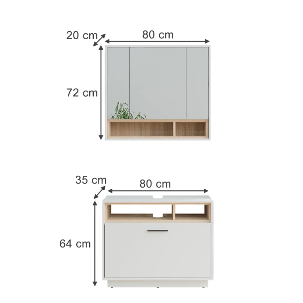 Waschbeckenunterschrank: 80 x 64 x 35 cm (BxHxT)