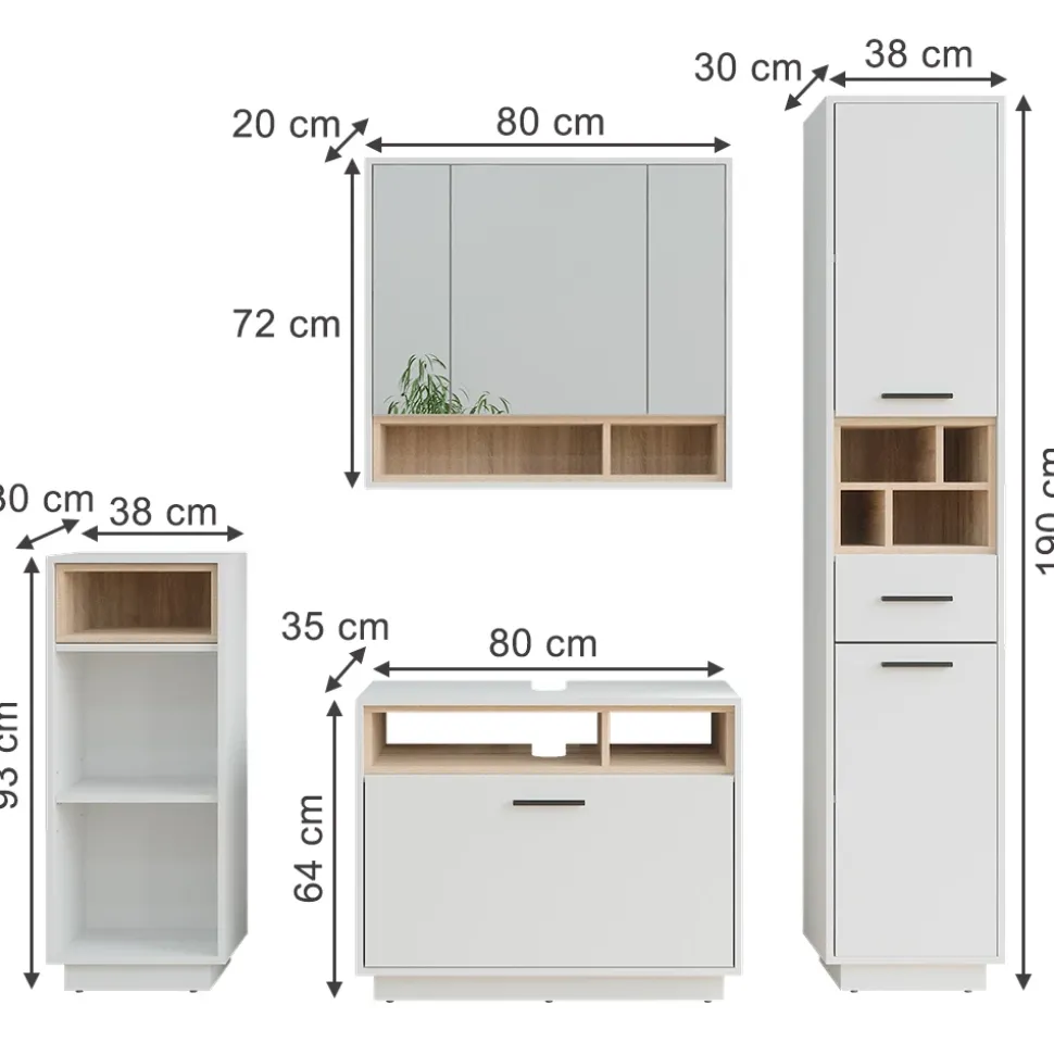 - MAßE: Badezimmer-Set besteht aus 4 Teilen. Die detaillierten Größen der Schränke sind auf den Fotos angegeben.