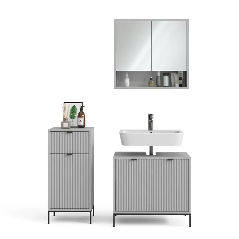 - LIEFERUMFANG: Das Badmöbel-Set enthält einen Spiegelschrank, Midischrank und Waschtischunterschrank. Mit allem nötigen Montagematerial und Anleitungen für eine mühelose Montage.