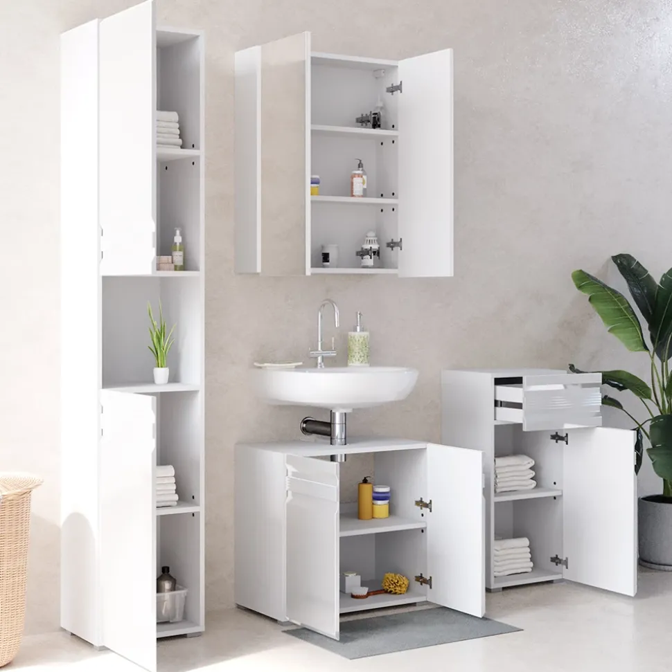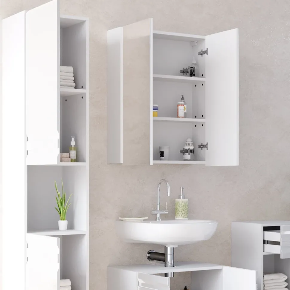 - MATERIAL: Das Set mit dem Spiegelschrank besteht aus pflegeleichter Spanplatte 16 mm, mit einer Melaminharzbeschichtung