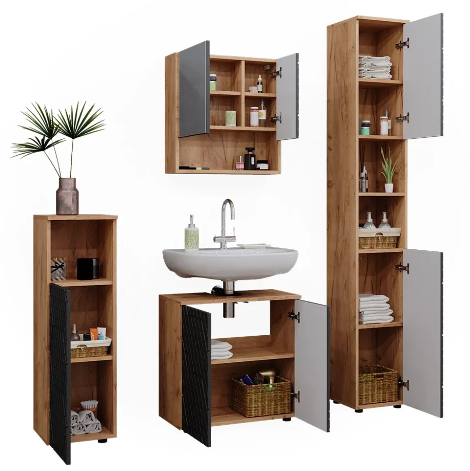 - Das Badezimmerschrank-Set bietet vielfältige Kombinationsmöglichkeiten – ideal für eine stilvolle und funktionale Einrichtung.