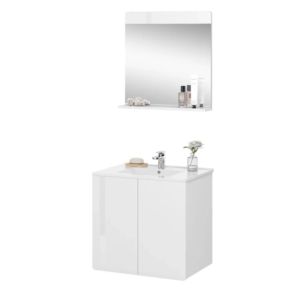 - MATERIAL: Das Set mit dem Spiegelschrank besteht aus pflegeleichter Spanplatte 16 mm, mit einer Melaminharzbeschichtung