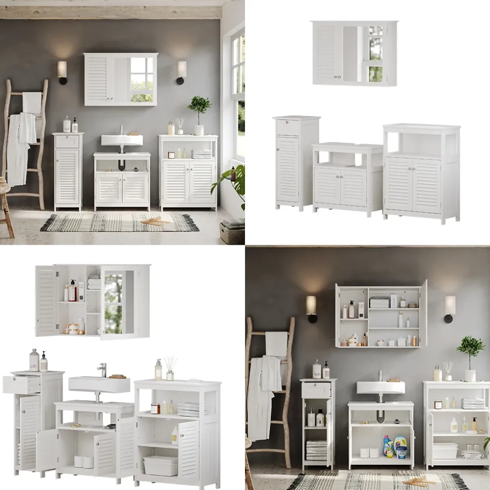 - LIEFERUMFANG: Erhalten Sie das Badmöbel-Set inklusive Montagematerial und -anleitung. Enthalten sind Sideboard, Spiegelschrank, Midischrank und Waschtischunterschrank für Ihre Badezimmereinrichtung.