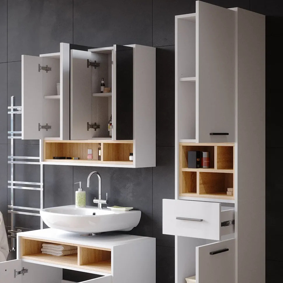 - Unser schmale Badezimmerschrank „Beatrice“ ist eine gute Entscheidung für Ihr Zuhause. Durch sein optimales Design passt er in jedes Bad.