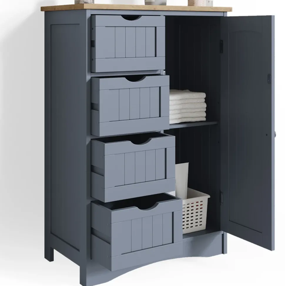 - Dieser Badezimmerschrank mit Schubladen bietet viel Stauraum und ist mit 4 Scharnieren stabil befestigt. Ein praktischer Begleiter für jedes Badezimmer.