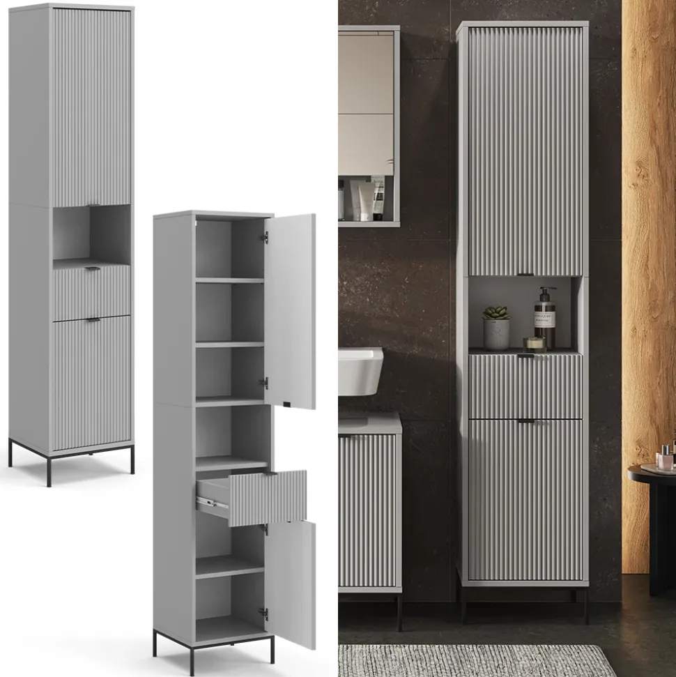 - Entdecken Sie den Vicco Hochschrank Eliza in stilvollem Grau. Ein schmaler Schrank für Handtuch und Kosmetik. Cleveres Badregal mit hochwertigem Design.