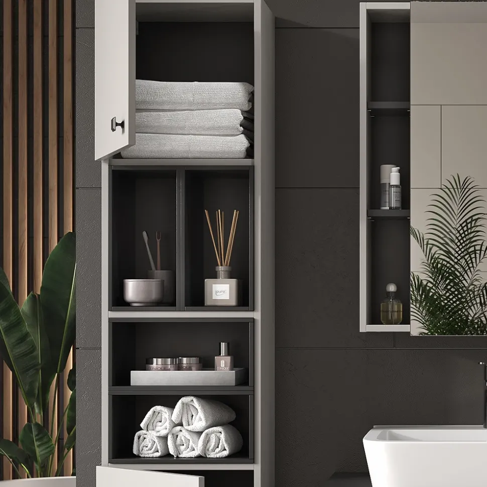 Die Möbelserie „Gerta“ bietet stilvolle Badezimmerschränke und -sets, die mit ihrem modernen Design und hochwertigen Materialien eine elegante Lösung für die Einrichtung Ihres Badezimmers bieten. Mit „Gerta“ schaffen Sie eine funktionale und ästhetische Umgebung für Ihre tägliche Pflegeroutine.
