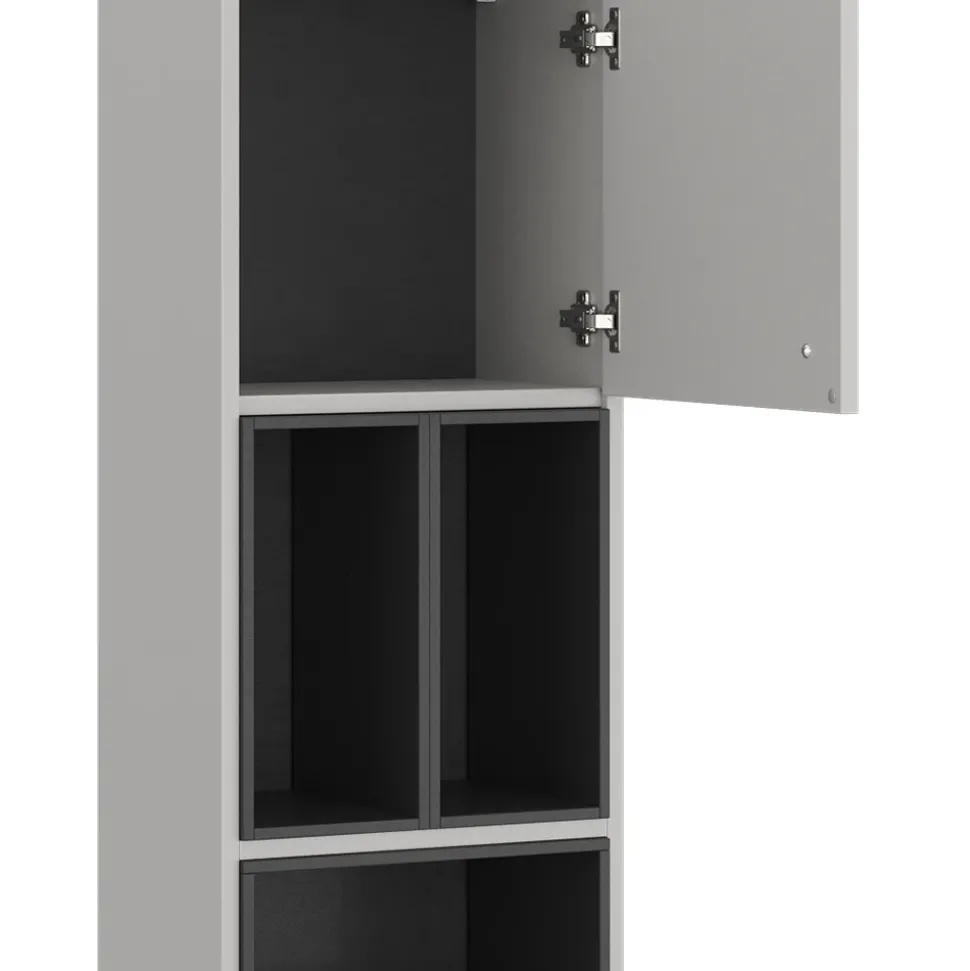 - Der Vicco Hängeschrank Gerta in Grau-Schwarz ist ein Badezimmerhängeschrank im modernen Design. Dieses hängende Badregal erhalten Sie mit zwei herausnehmbaren Ablagen.