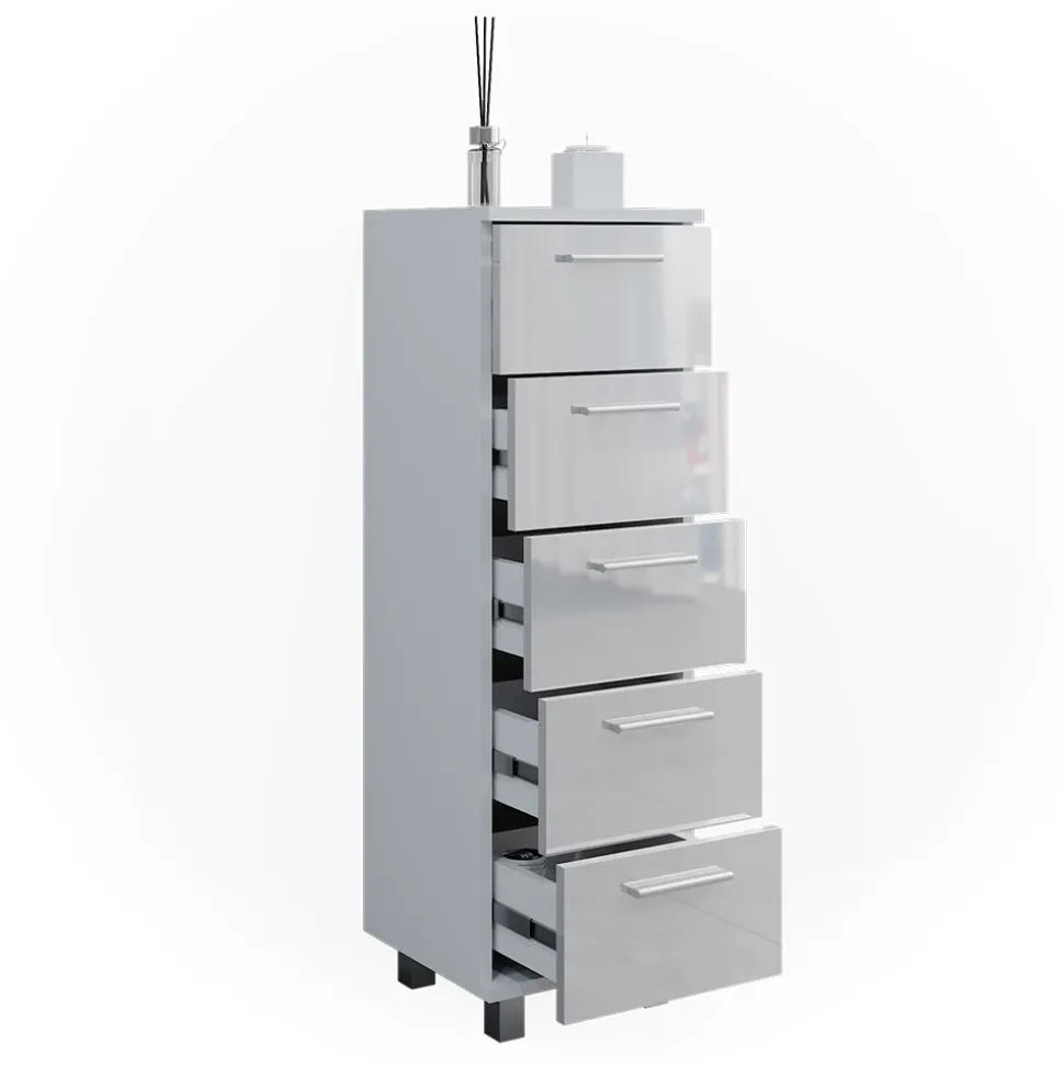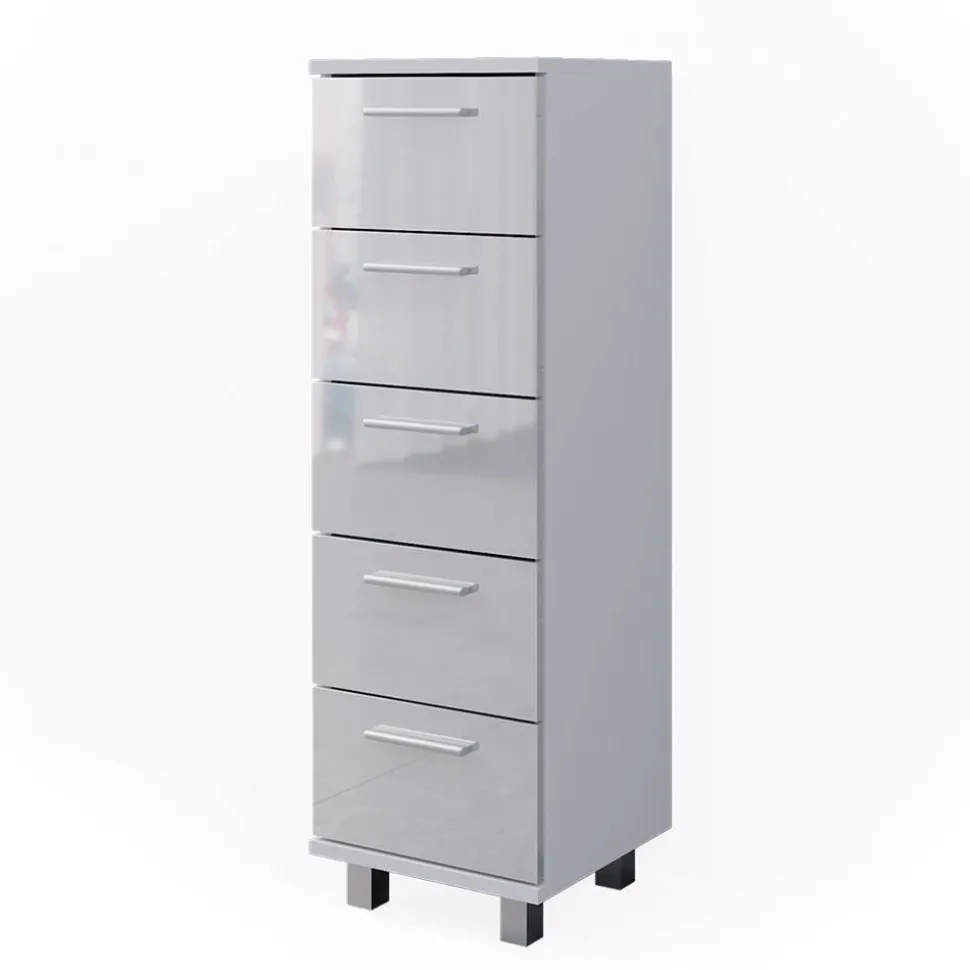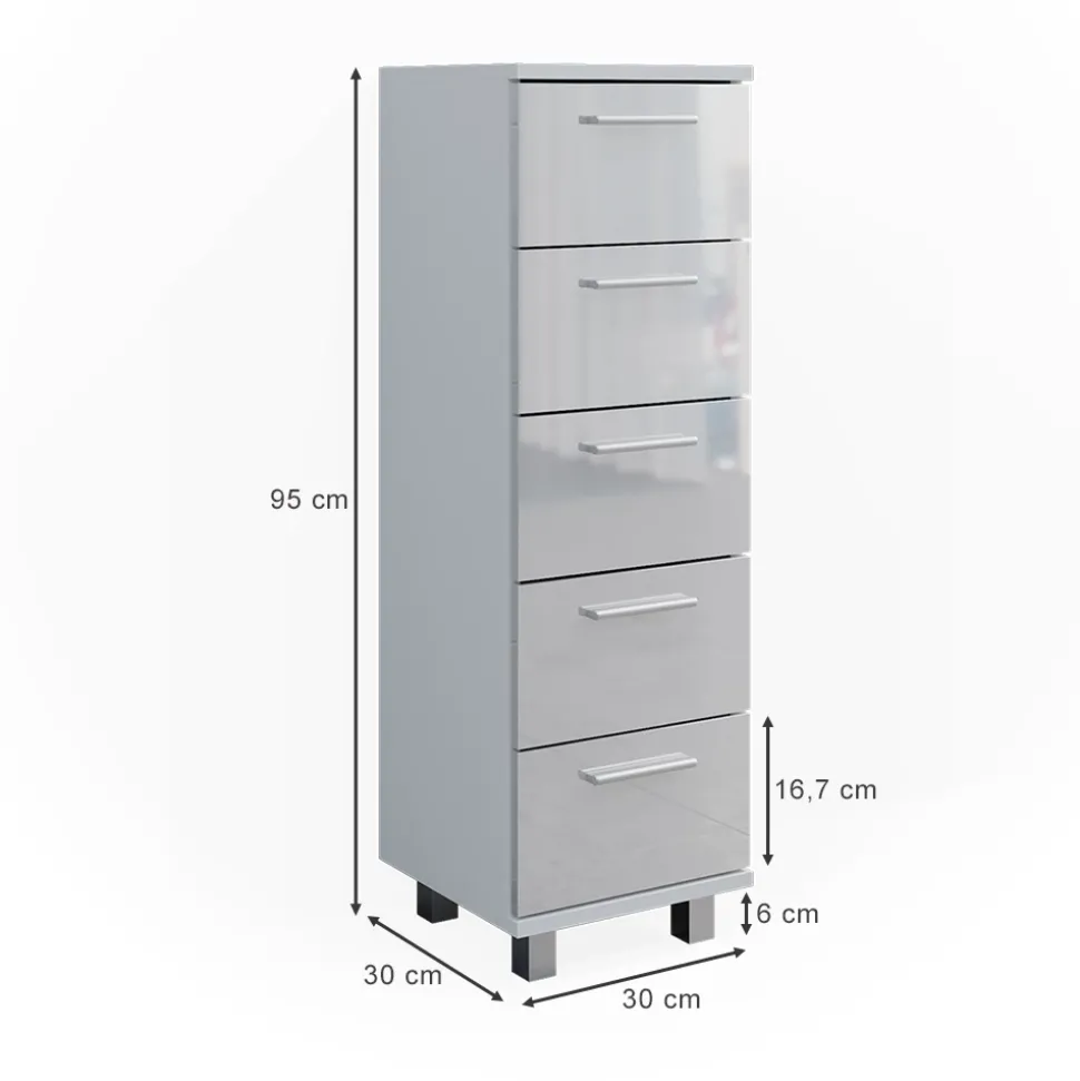 - Das Badezimmerschrank mit Schubladen ist ideal für kleinere Badezimmer. Durch die fünf Schubladen bietet es reichlich Stauraum und ist dabei platzsparend.