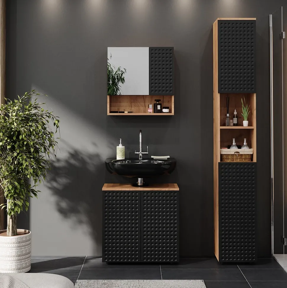 „Irma“ ist eine Möbelserie, die sowohl Badezimmer- als auch Schlafzimmermöbel sowie Schminktische umfasst. Mit vielen Farbkombinationen und Optionen für einzelne Einheiten und Sets bietet sie vielseitige Möglichkeiten. Die Fronten bestehen aus MDF.