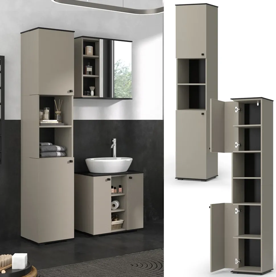 Der Hochschrank verbindet modernes Design mit praktischer Funktionalität. Mit seinem schlanken Format und großzügigen Stauraummöglichkeiten ist er die perfekte Lösung für stilvolle Ordnung im Badezimmer.