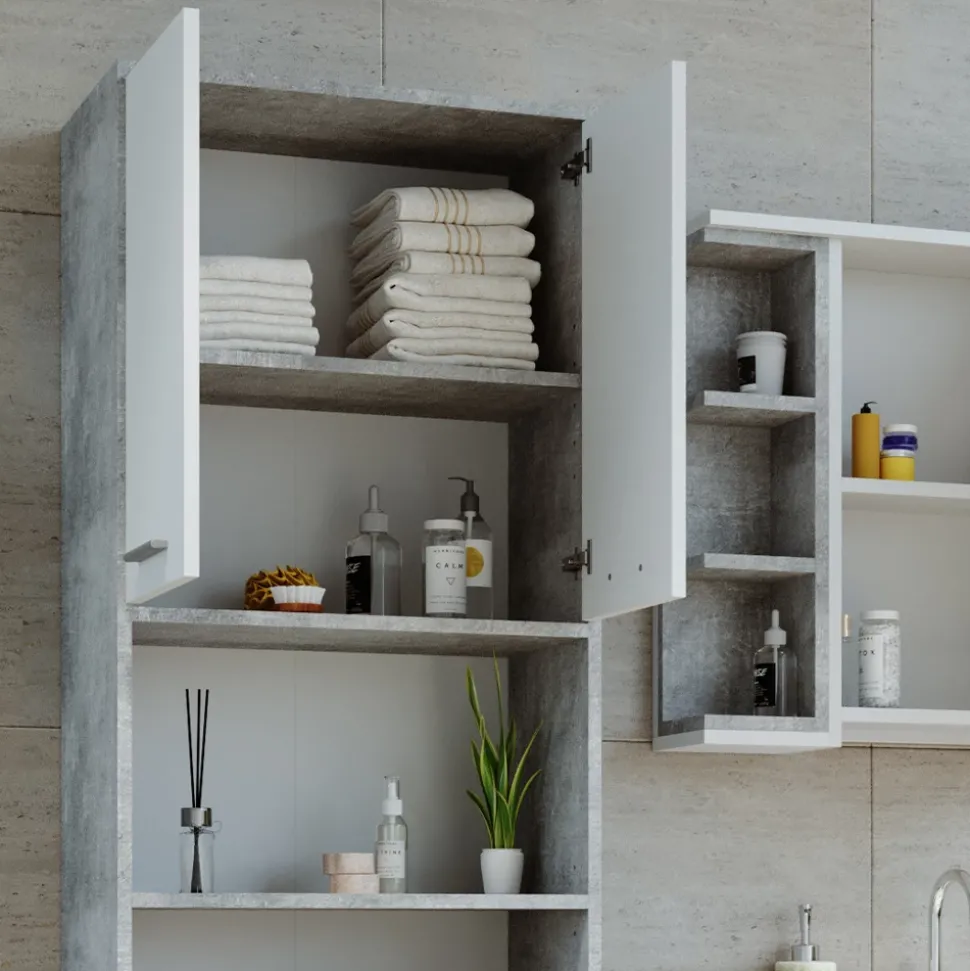 „Maris“ ist eine Möbelserie, die hohe Badezimmerschränke in verschiedenen Farbkombinationen anbietet. Die Serie bietet ausreichend Stauraum für Ihre Badutensilien und ermöglicht es Ihnen, Ihr Badezimmer ordentlich und stilvoll zu organisieren.