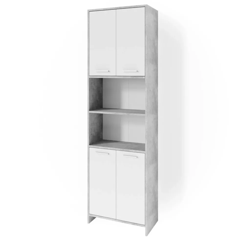 - Der Badezimmerhochschrank verfügt über zwei offene Ablagen und vier Türen mit sechs geschlossenen Regale für maximalen Stauraum.