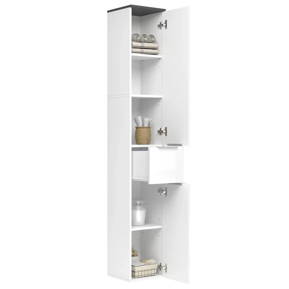 - Der Badezimmerhochschrank bietet viel Stauraum mit zwei Türen, einer Schublade sowie fünf höhenverstellbaren Fächern. .