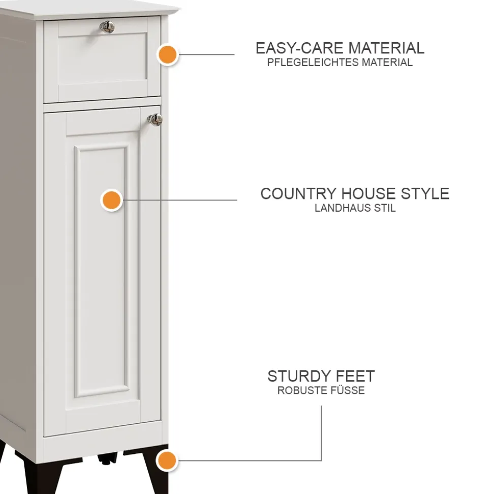 - MAßE: Die Badezimmermöbel, mit Schublade, hat folgende Maße: Tiefe: 30 cm, Breite: 32 cm, Höhe: 92 cm. Die detaillierten Größen sind auf den Fotos angegeben.