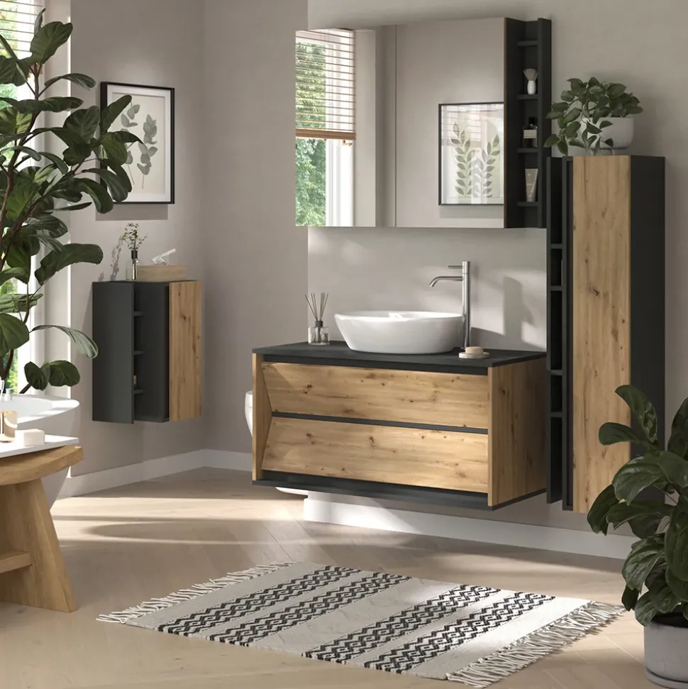 Die Möbelserie Edelin umfasst stilvolle Badezimmerschränke, die Eleganz und praktische Aufbewahrung perfekt kombinieren