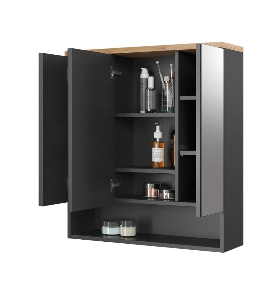 - MATERIAL: Der Badezimmer-Spiegelschrank besteht aus pflegeleichter Spanplatte 16 mm, mit einer Melaminharzbeschichtung. Einige Bestandteile des Artikels sind aus Glas gefertigt