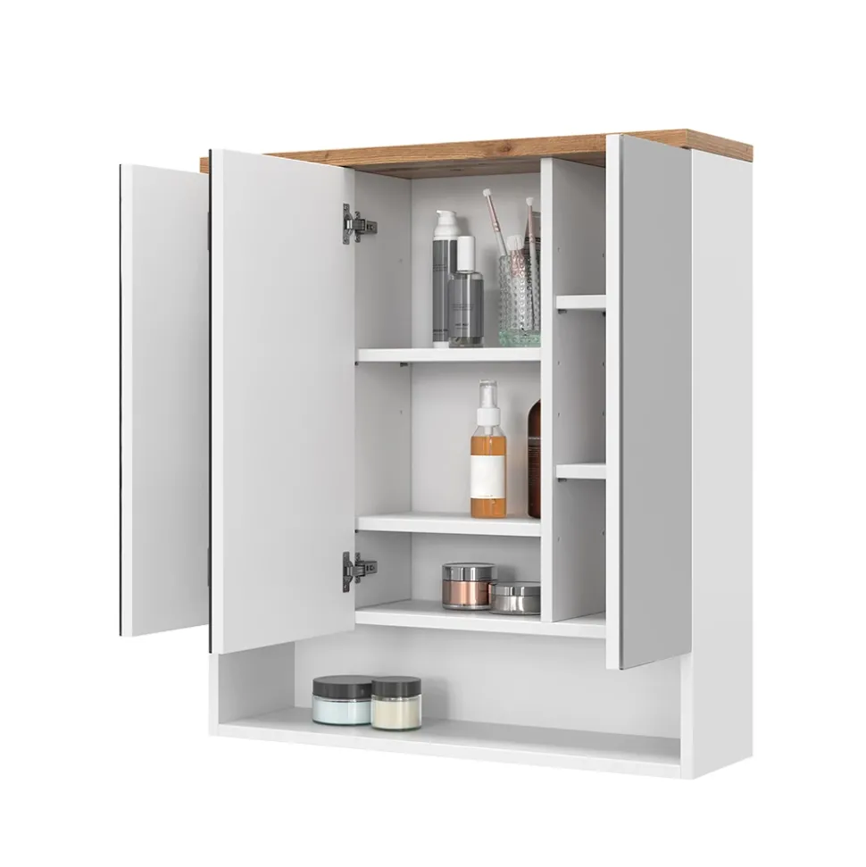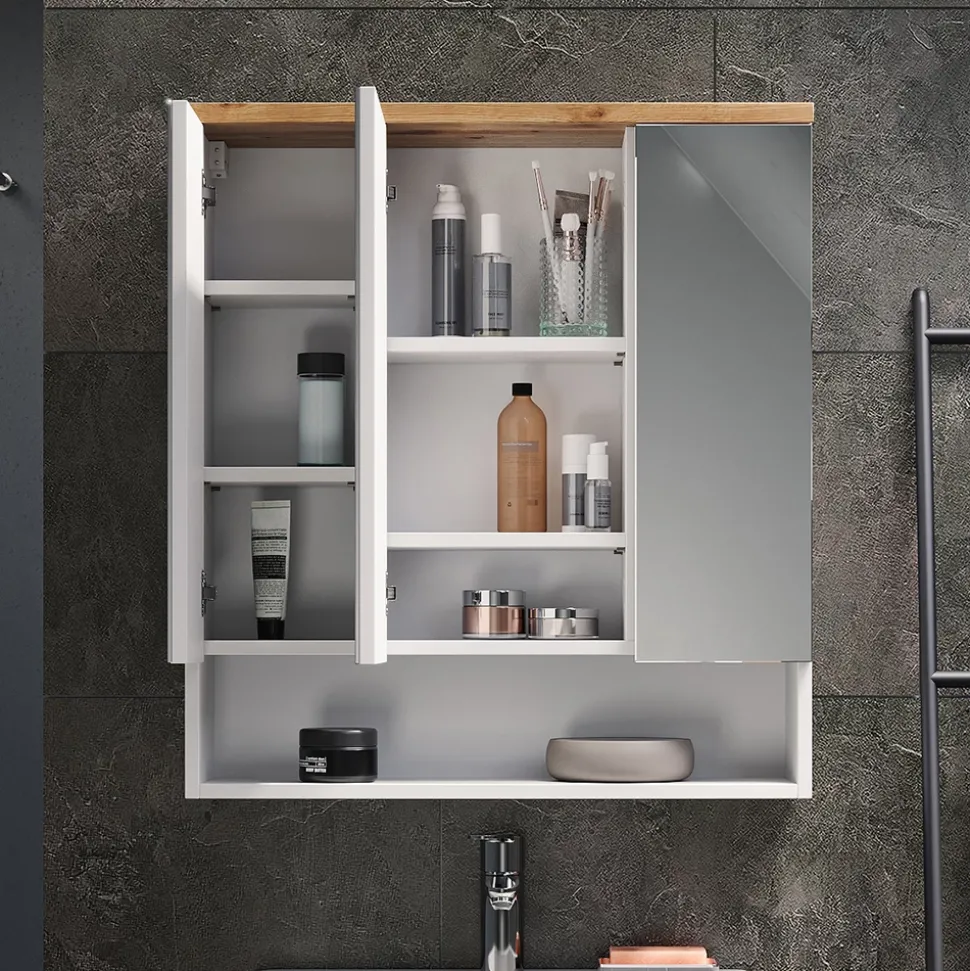 - MATERIAL: Der Badezimmer-Spiegelschrank besteht aus pflegeleichter Spanplatte 16 mm, mit einer Melaminharzbeschichtung