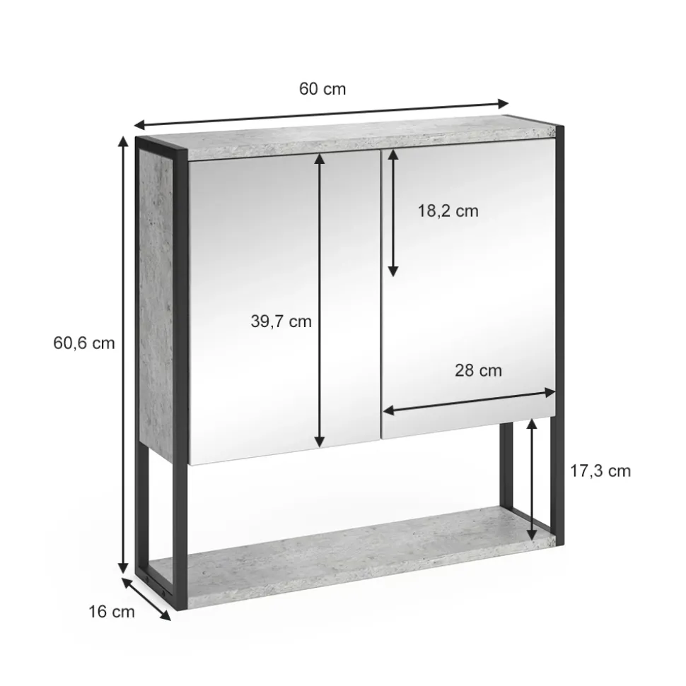 - MAßE: Der Badezimmerschrank mit Spiegel hat eine Breite von 60 cm, eine Höhe von 60 cm und eine Tiefe von 16 cm. Alle detaillierten Größen sind auf den Fotos angegeben.