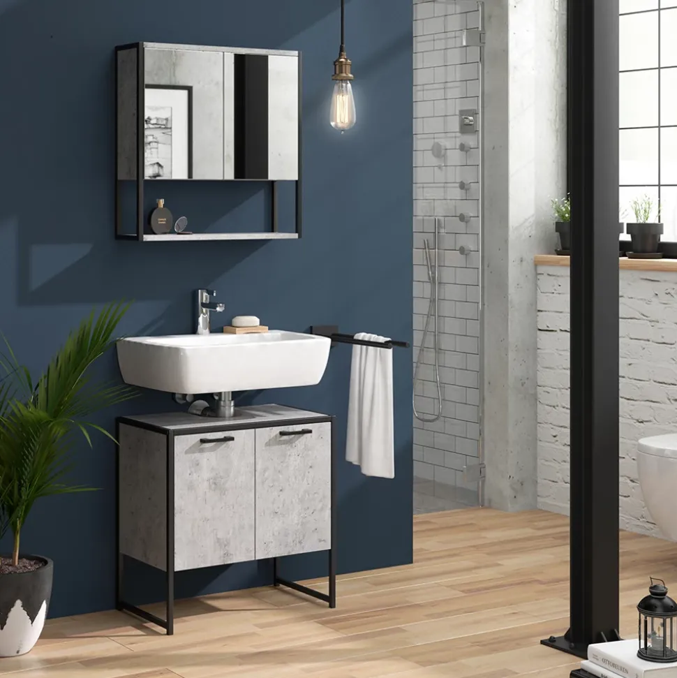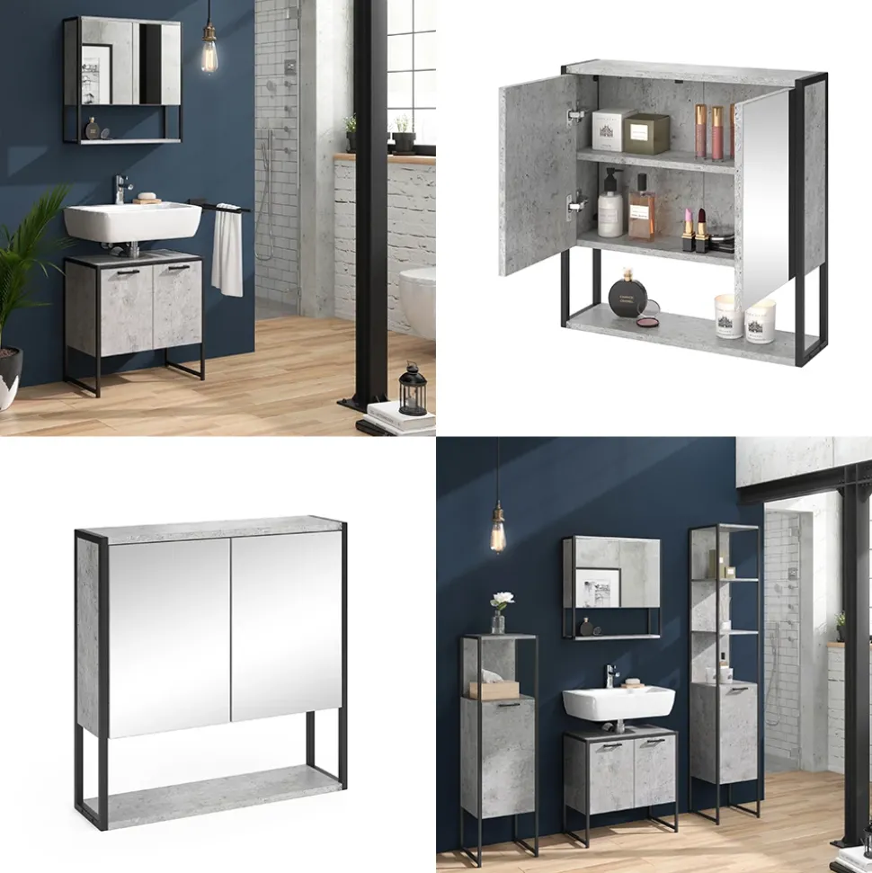 Die Möbelserie „Fyrk“ bietet eine vielfältige Auswahl an Badezimmer-, Schlafzimmer-, Esszimmer-, Schminktische-, Wohnzimmer-, Schrank- und Arbeitszimmermöbeln im Loft-Stil. Mit mehreren Farbkombinationen und Optionen für Einzelteile und Sets können Sie Ihren Raum nach Ihren individuellen Vorlieben gestalten.