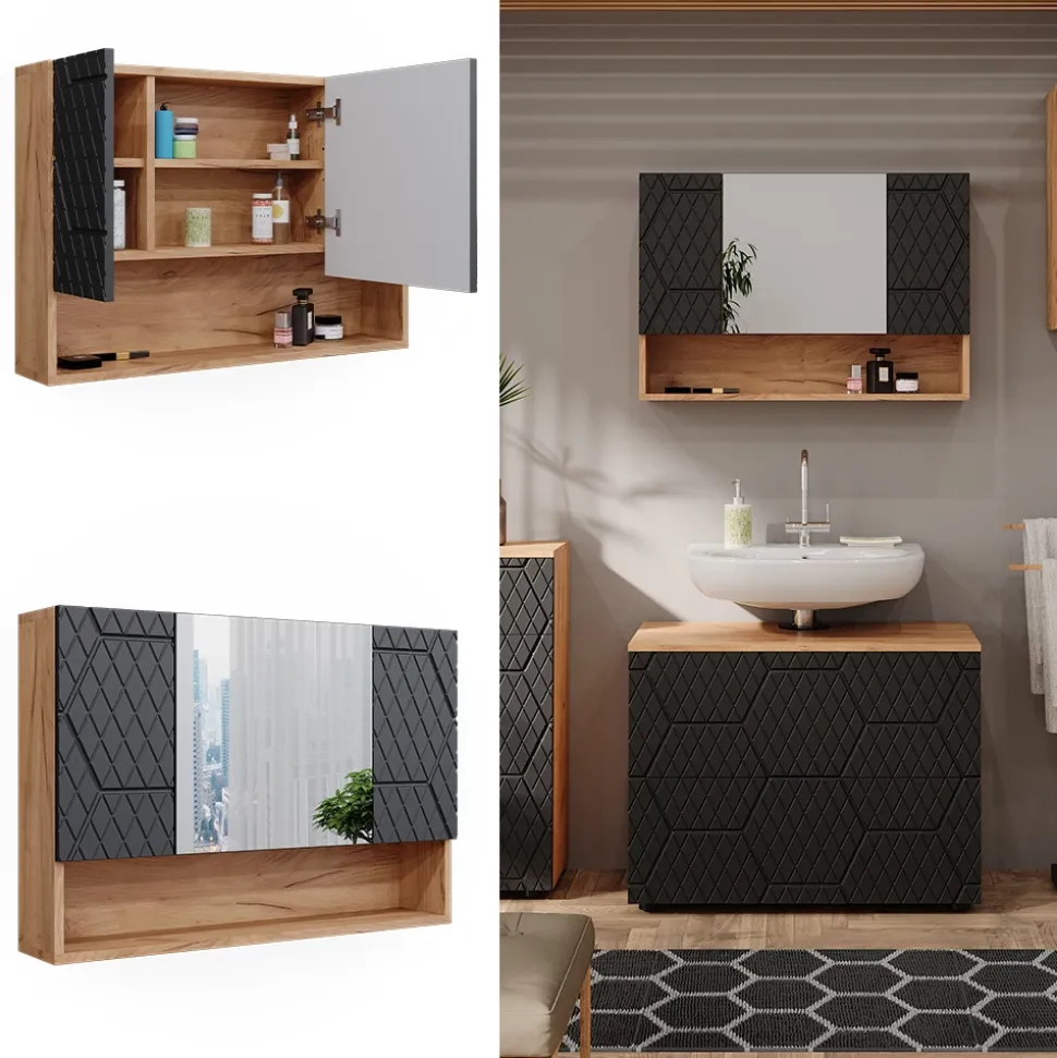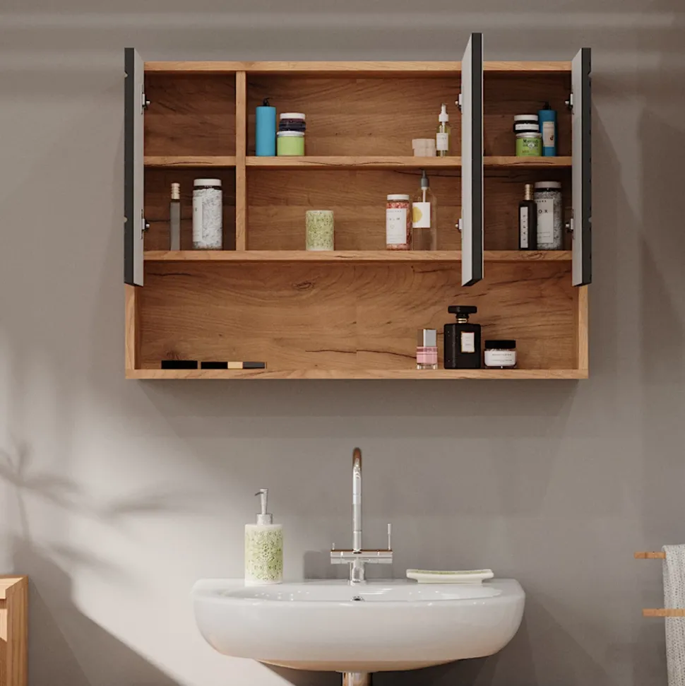 - Der Badezimmerspiegel ist platzsparend und bietet dennoch reichlich Stauraum. Die offenen und geschlossenen Ablagefächer sorgen für zusätzliche Flexibilität.