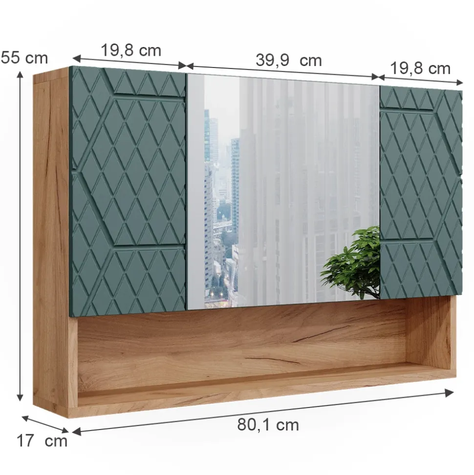 - MAßE: Der Badezimmerschrank mit Spiegel hat eine Breite von 80,1 cm, eine Höhe von 55 cm und eine Tiefe von 17 cm. Alle detaillierten Größen sind auf den Fotos angegeben.