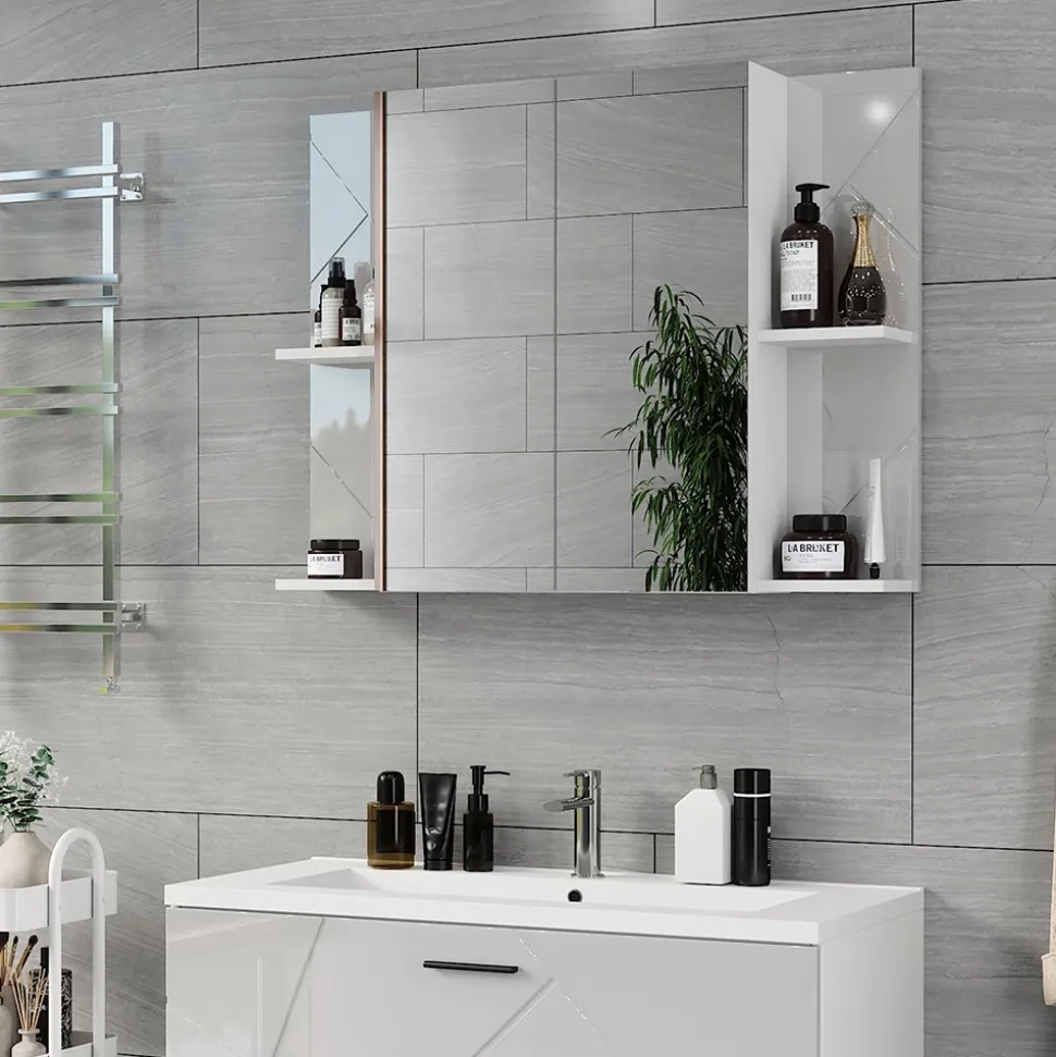 - Der Badezimmerspiegel verfügt über verstellbare Einlegeböden mit einem Abstand von 32 mm, was eine flexible Nutzung ermöglicht. Ideal für ein organisiertes Badezimmer.
