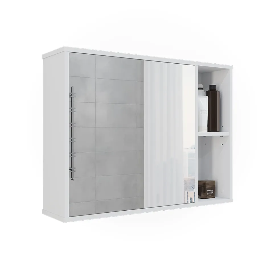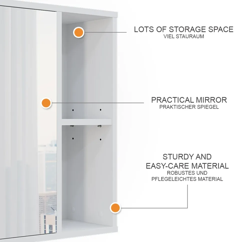 - MATERIAL: Der Badspiegelschrank besteht aus einer pflegeleichten 16 mm Spanplatte.