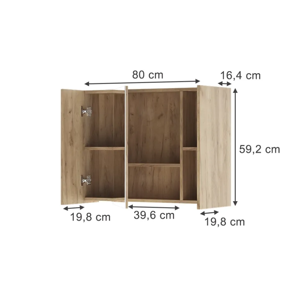- MAßE: Der Badezimmerschrank mit Spiegel und Regalen misst Tiefe 16,4 cm, Breite 80 cm und Höhe 59,2 cm.