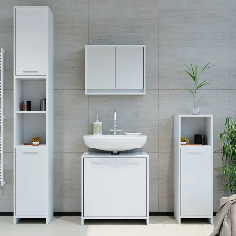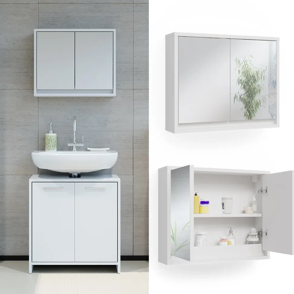 Der Bad Spiegelschrank Mila ist die perfekte Ergänzung für jedes Badezimmer. Mit seinem stilvollen Design und praktischen Funktionen bietet er ausreichend Stauraum und eine elegante Spiegeloberfläche.