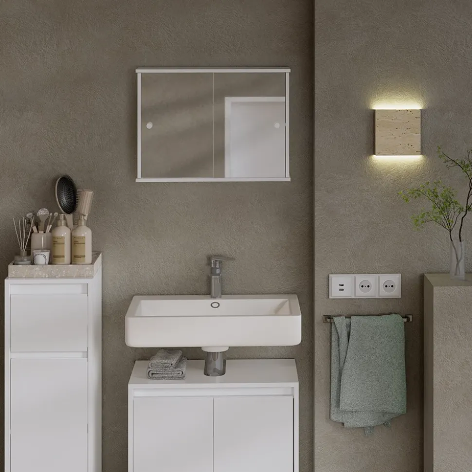 Der Badspiegelschrank Mireo ist nicht nur ein praktisches Möbelstück für Ihr Badezimmer, sondern auch ein stylishes Accessoire, das Ihrem Raum Eleganz verleiht. Mit seinen Schiebetüren und Regalen bietet er ausreichend Stauraum für all Ihre Beauty-Produkte und Badutensilien. Der großzügige Spiegel ermöglicht es Ihnen, sich morgens perfekt in Szene zu setzen. Das moderne Design und die hochwertige Verarbeitung machen den Badspiegelschrank Mireo zu einem Must-Have für Ihr Zuhause. Investieren Sie in Komfort und Stil – mit dem Badspiegelschrank Mireo wird Ihr Badezimmer zum echten Wohlfühlort.
