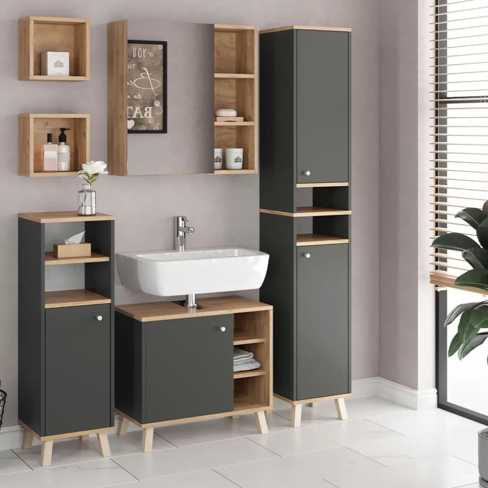 Die Möbelserie „Senyo“ umfasst Badezimmermöbel in verschiedenen Farbkombinationen. Mit vielen Optionen für einzelne Einheiten und Sets können Sie Ihr Badezimmer nach Ihren persönlichen Vorlieben gestalten und eine harmonische Atmosphäre schaffen.